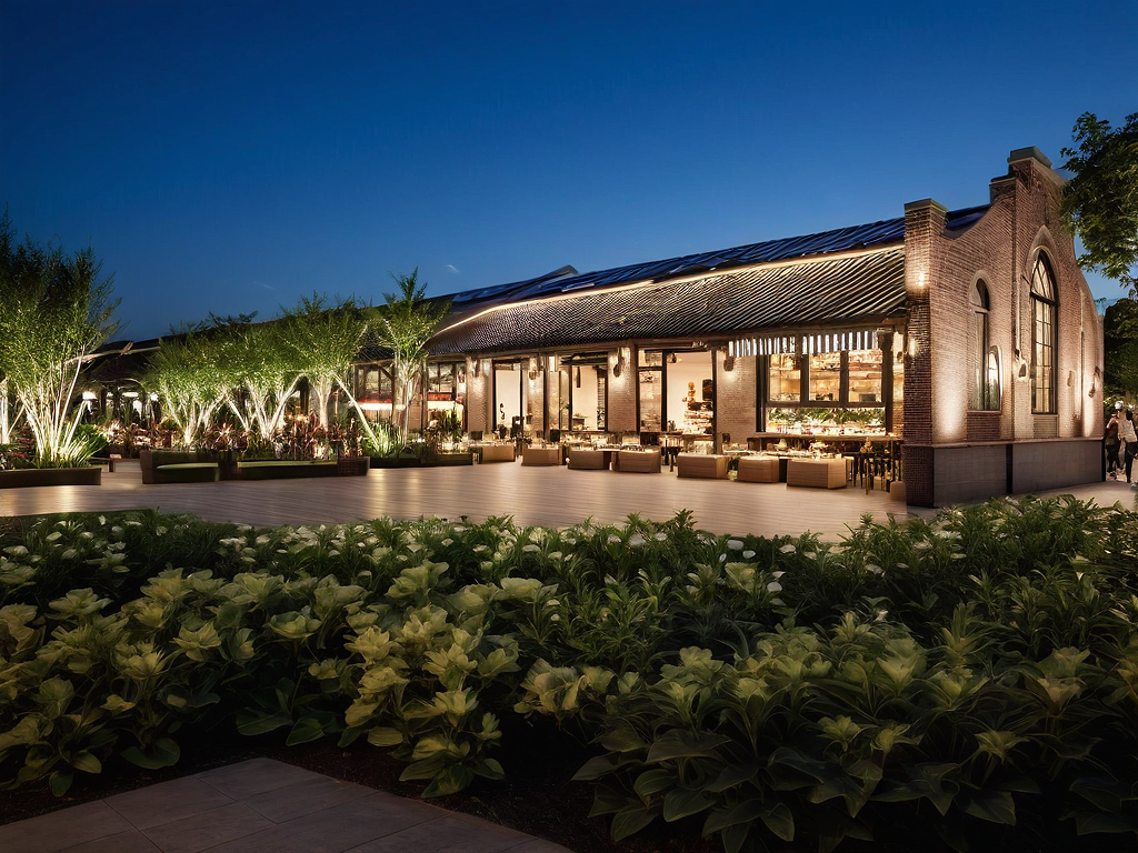 Promptfood hall, amazing garden, same construction materials, same facade, amazing terrace