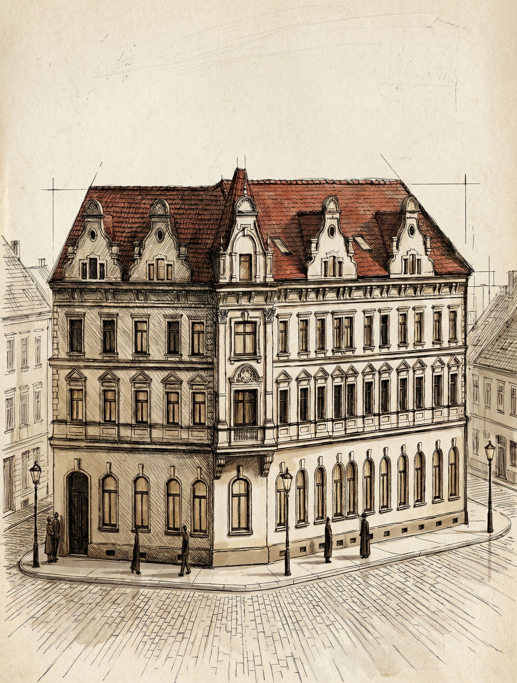 Promptmake it looks like artistic architectural sketch af a building...aplly the style of drawing used in reference photos, keep exact camera angle