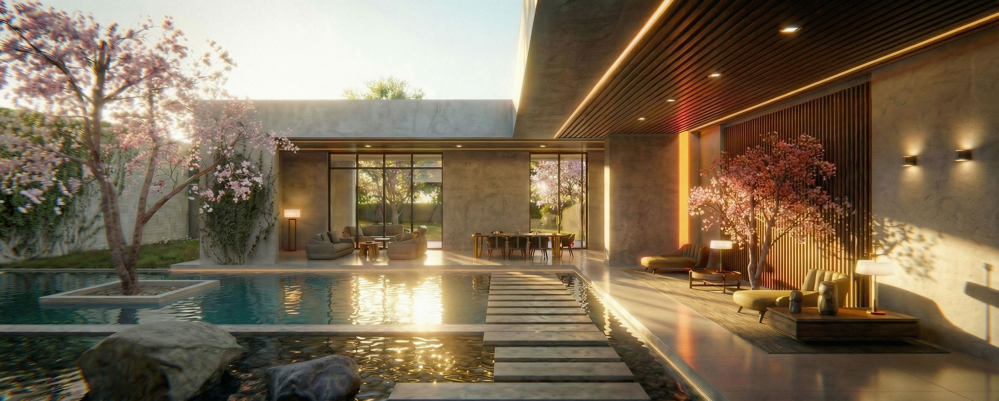 PromptCERRAR EL VANO DE ATRAS DEL COMEDOR CON UNA PARED DEL MISMO TONO DE LAS PAREDES EXISTENTES AL LADO DERECHO DE LAS PUERTAS EXISTENTES CONSERVAR LAS PUERTAS DE 4 HOJAS, keep exact camera angle