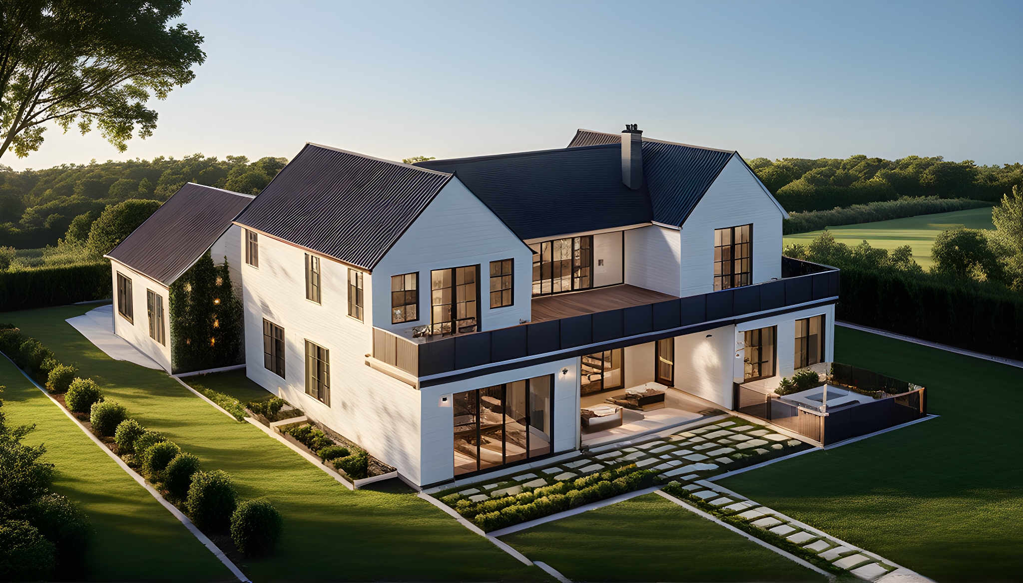 PromptLumion render style in hamptons environment, daytime rendering, lawn
