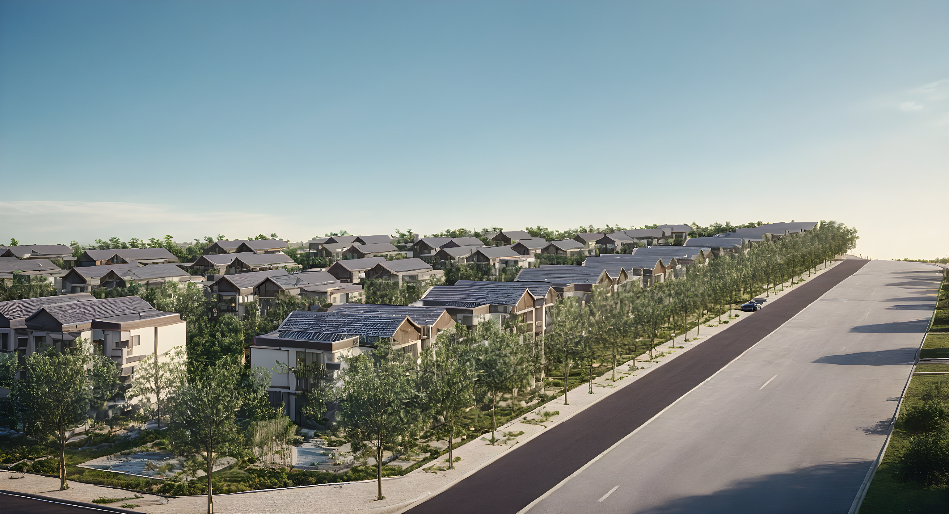 PromptA Mass Housing development complex, include people and vehicles depicting life?