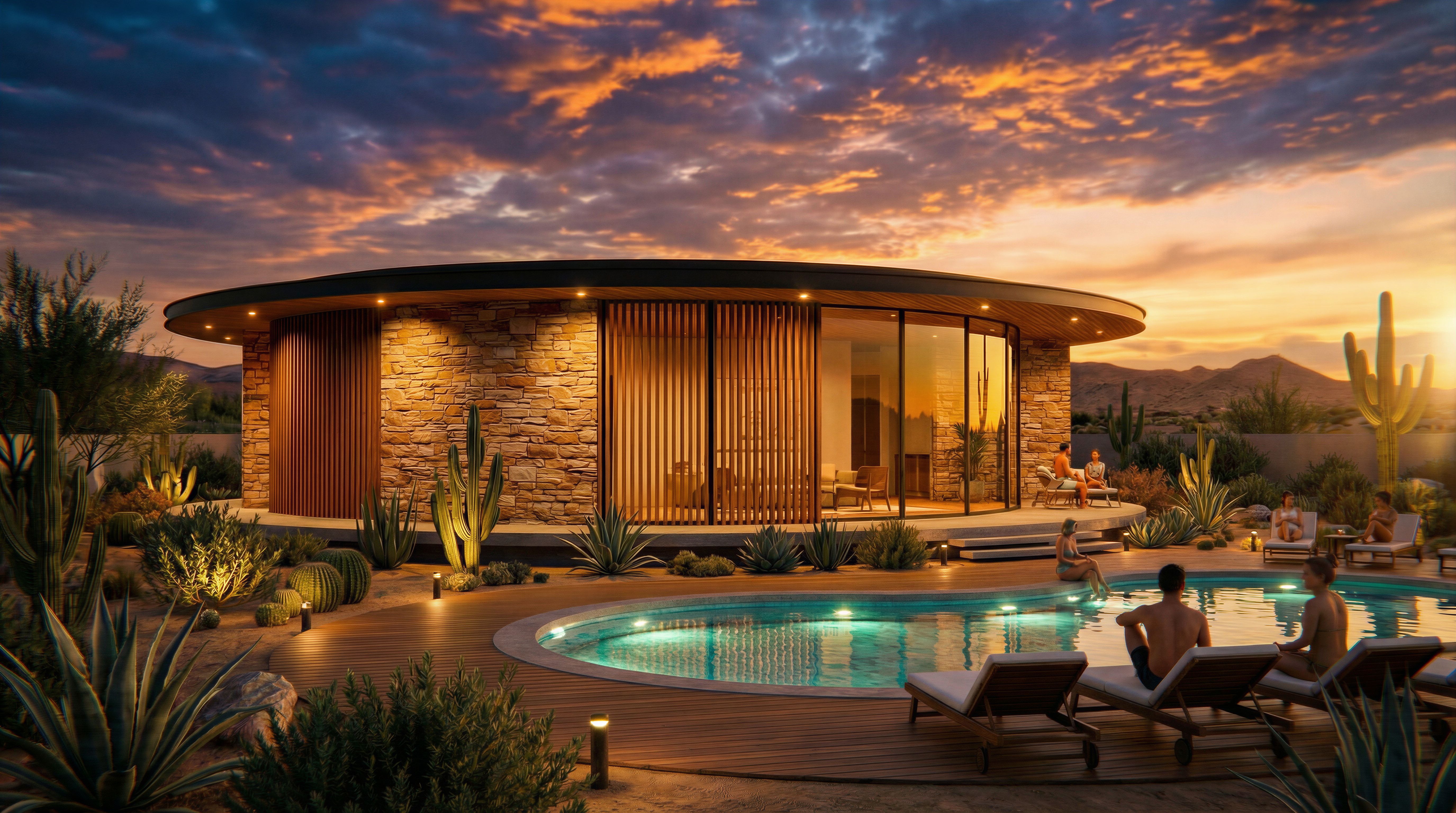 Add landscape lighting and pool lighting, make sky more dramatic