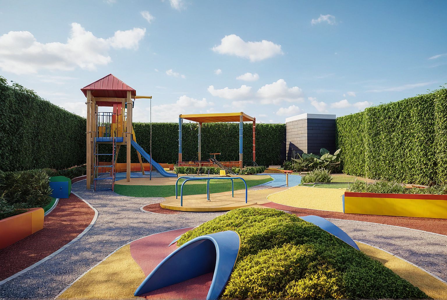 realistic and respect the colors and vegetation in a kids playground