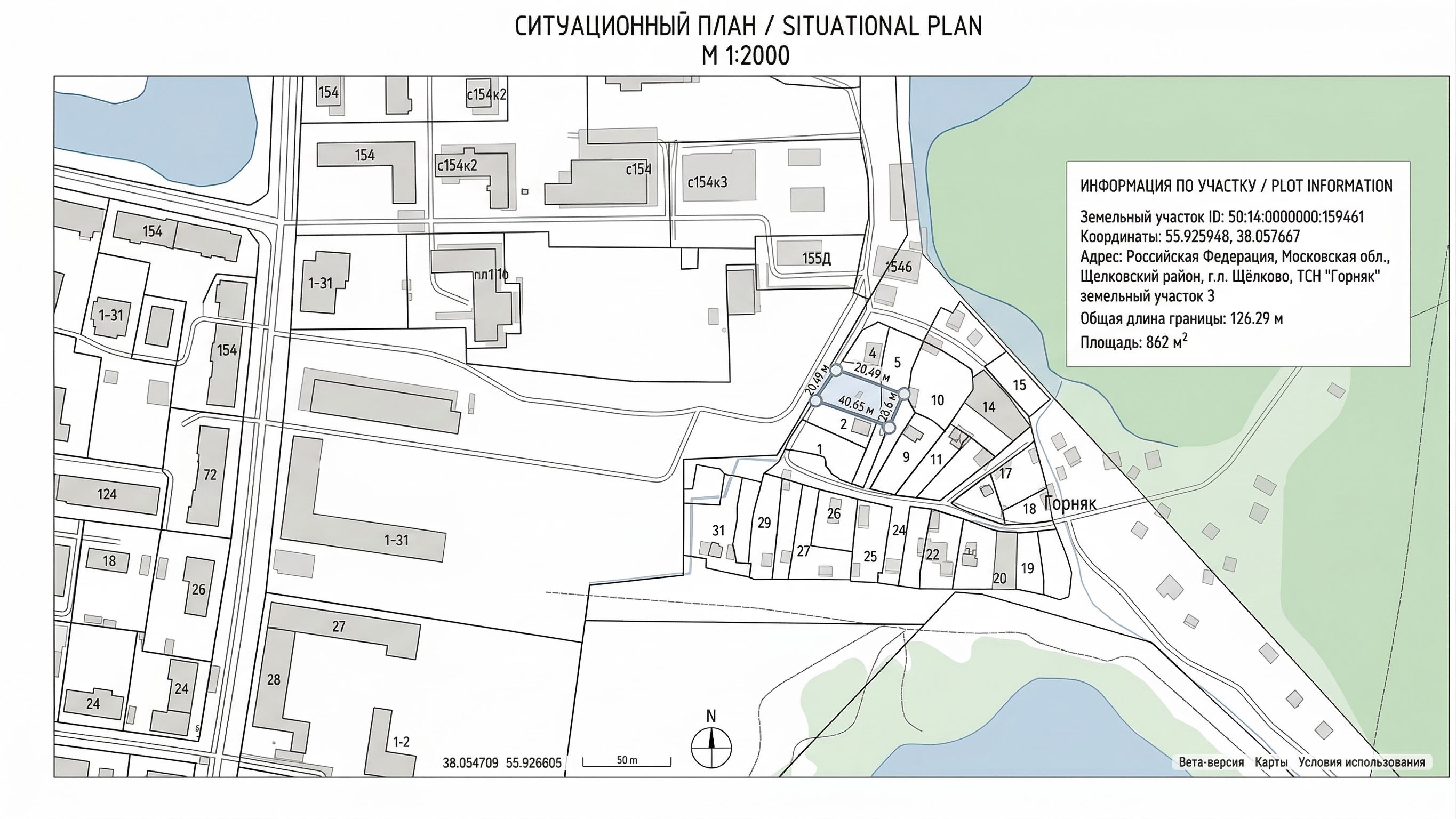 Create a situational plan in scale 1:2000, keep exact camera angle