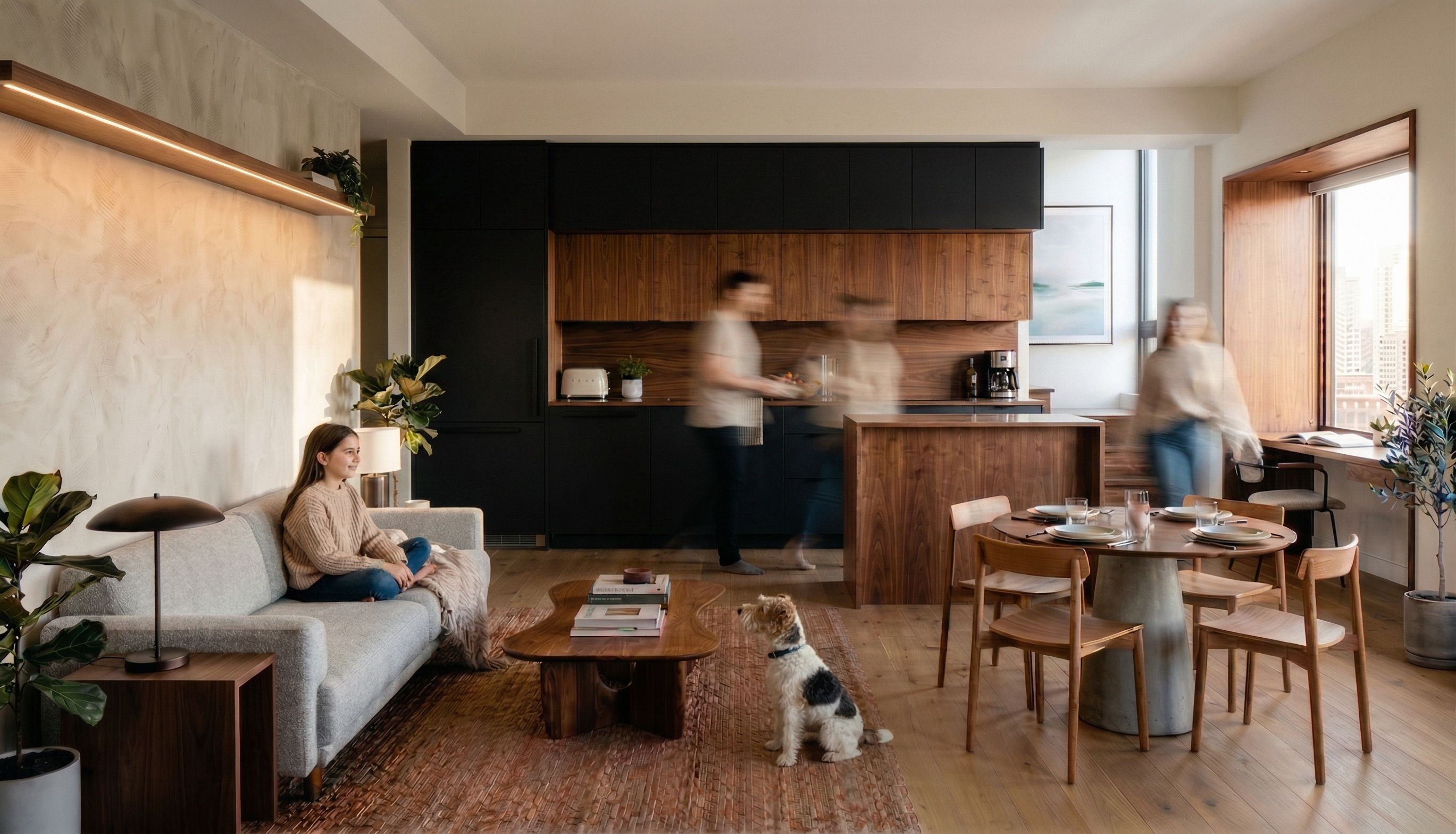 Promptreuse exact image. substitute black cabinets for white and keep wood cabinets and island as shown