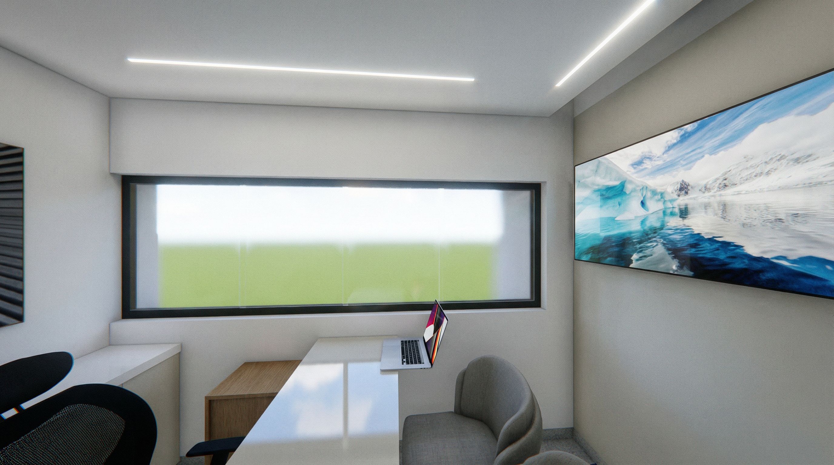 PORFAVOR AÑADE LOS EFECTOS DE LA ILUMINACION DEBE SER BLANCA PORQUE ES UNA CLINICA, EL PISO ES DE GRANITO COLOR GRIS CLARO SE DEBE NOTAR EL BRILLO, QUITA LA COMPUTADORA Y COLOCA OTRA, CONVIERTE EL RENDER EN UNA IMAGEN REALISTA, keep exact camera angle