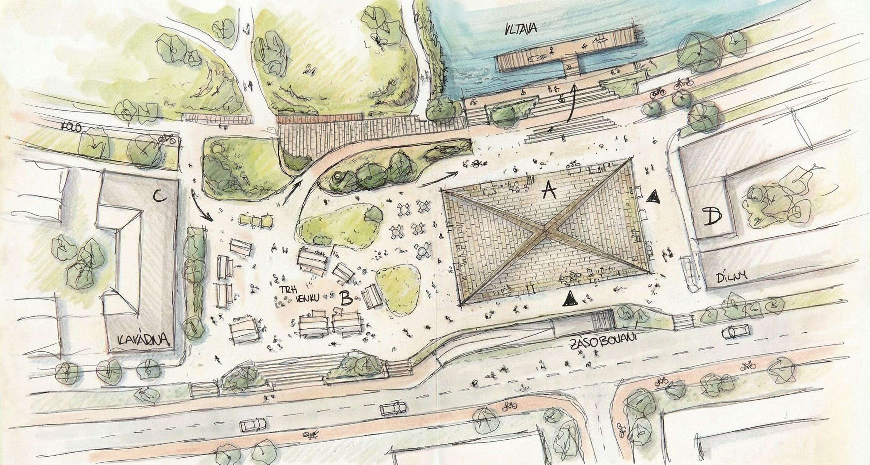 Promptmake the situation in style like in reference photo but alpy it to my uploaded photo...so the roof will be diferent and dont change my autocad things only the stylee of drawing, keep exact camera angle