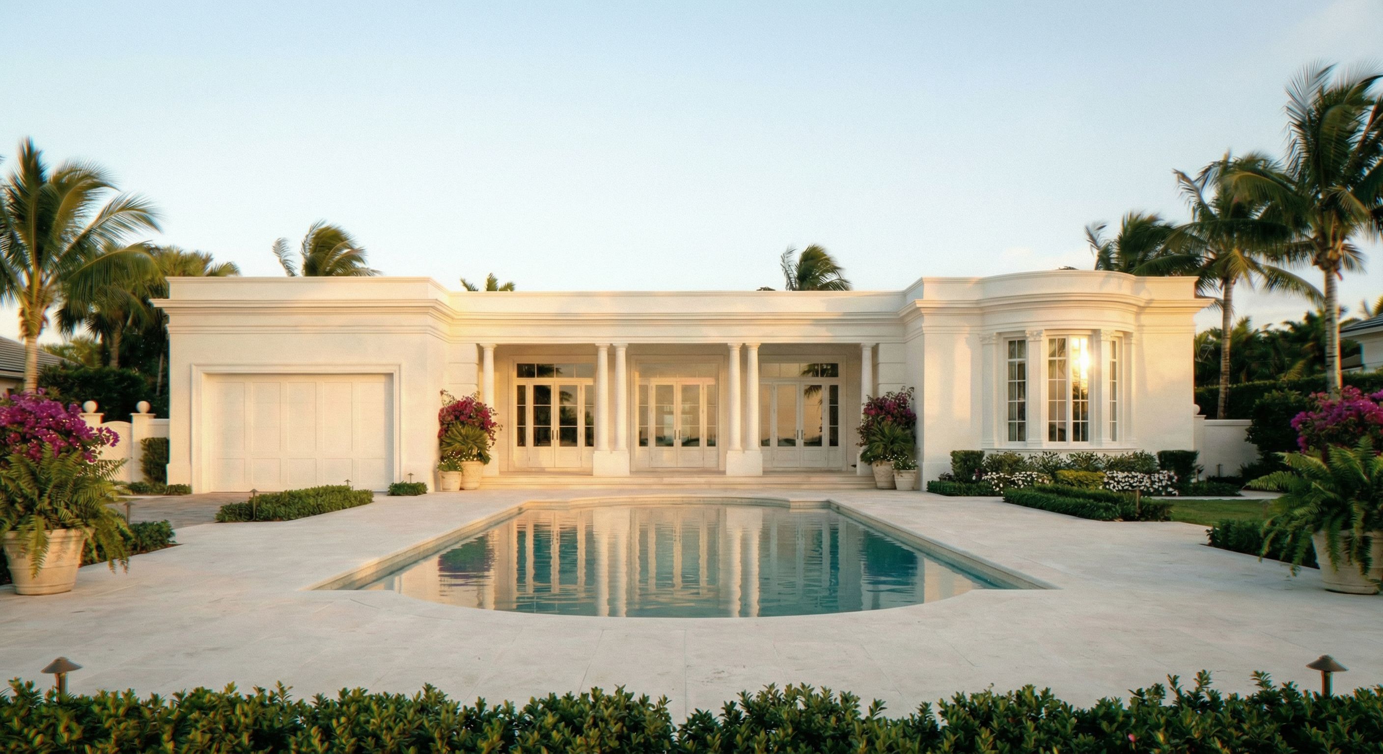 i want it to look like an architectural feature that is refined and elegant but follows the elements of teh regency style. this is a regency style home in palm beach so it should look like a contemporary elegant high end version. use teh reference image for inspiration. i want it to compliment the rest of the house. , keep exact camera angle
