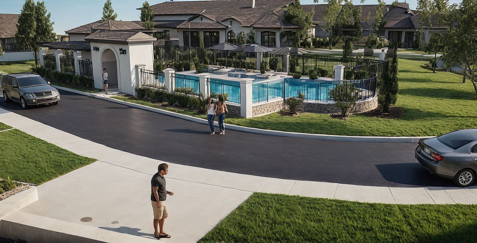 Neighborhood with pool and driveways