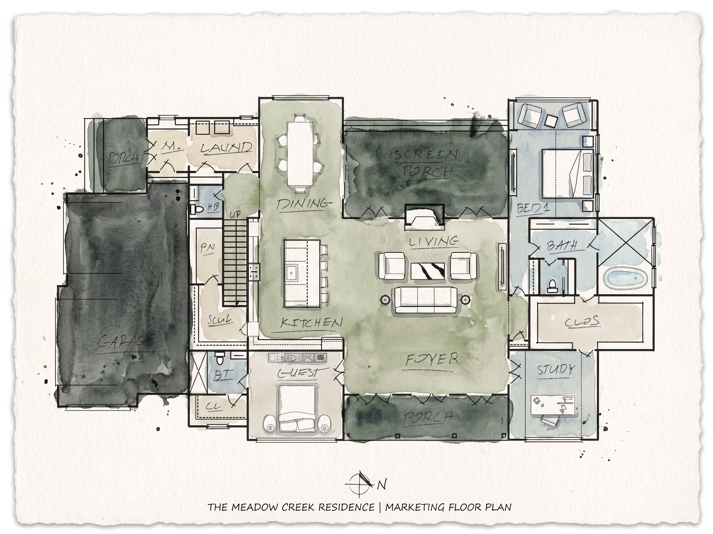 PromptRender this as a marketing plan. Add watercolor., keep exact camera angle