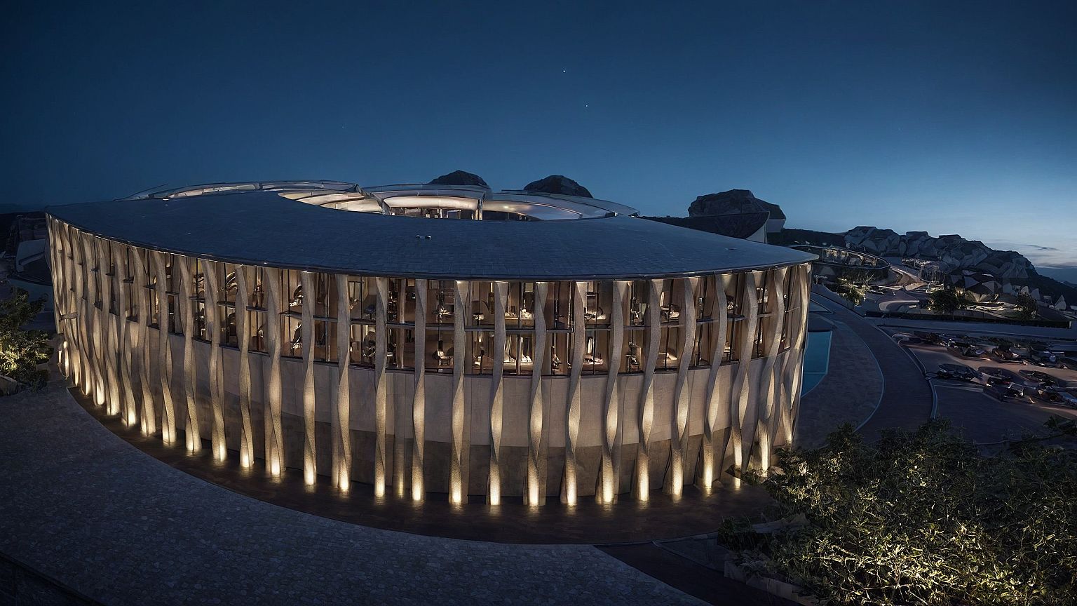 make the building looks realistic, keep the roof Gray like before, night