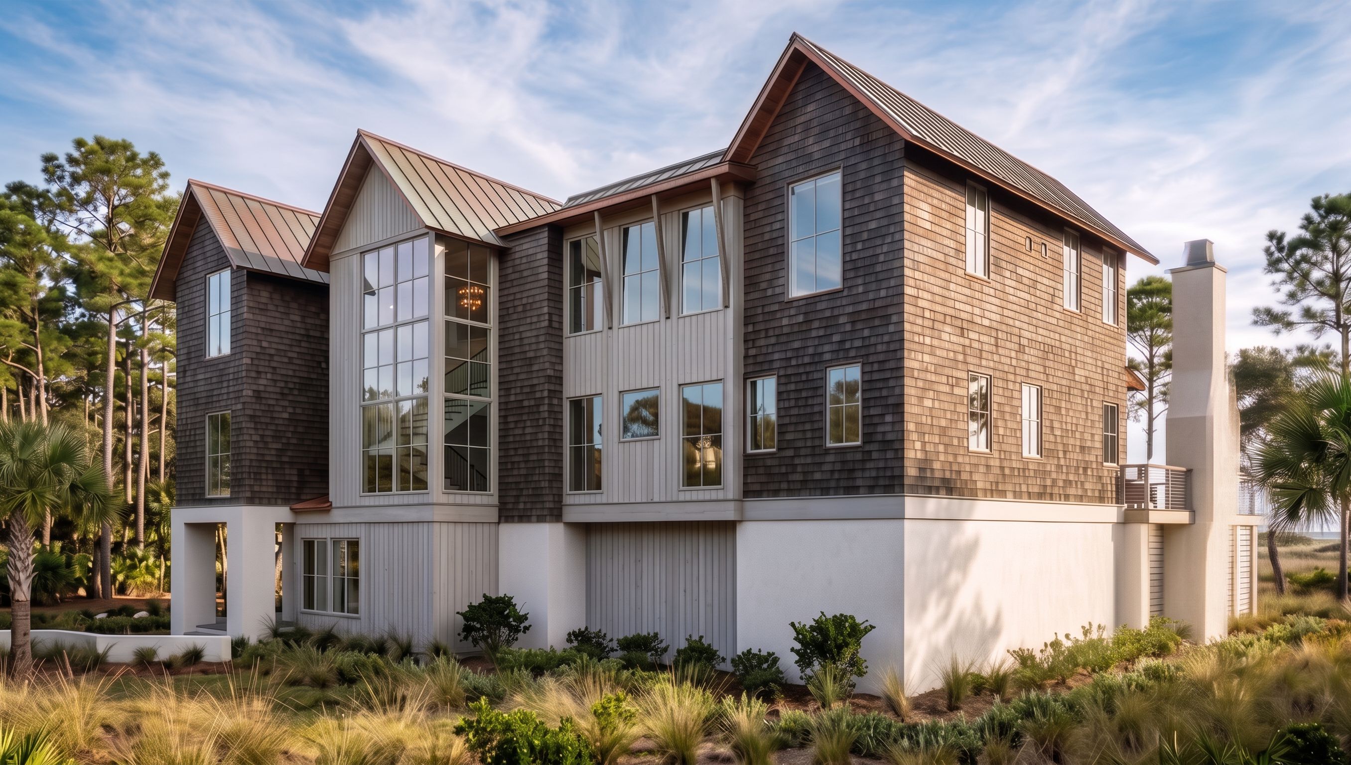 Promptuse this image but remove the sidewalk at the ground level remove sidewalk make chimney stucco there is no brick on the exterior, keep exact camera angle