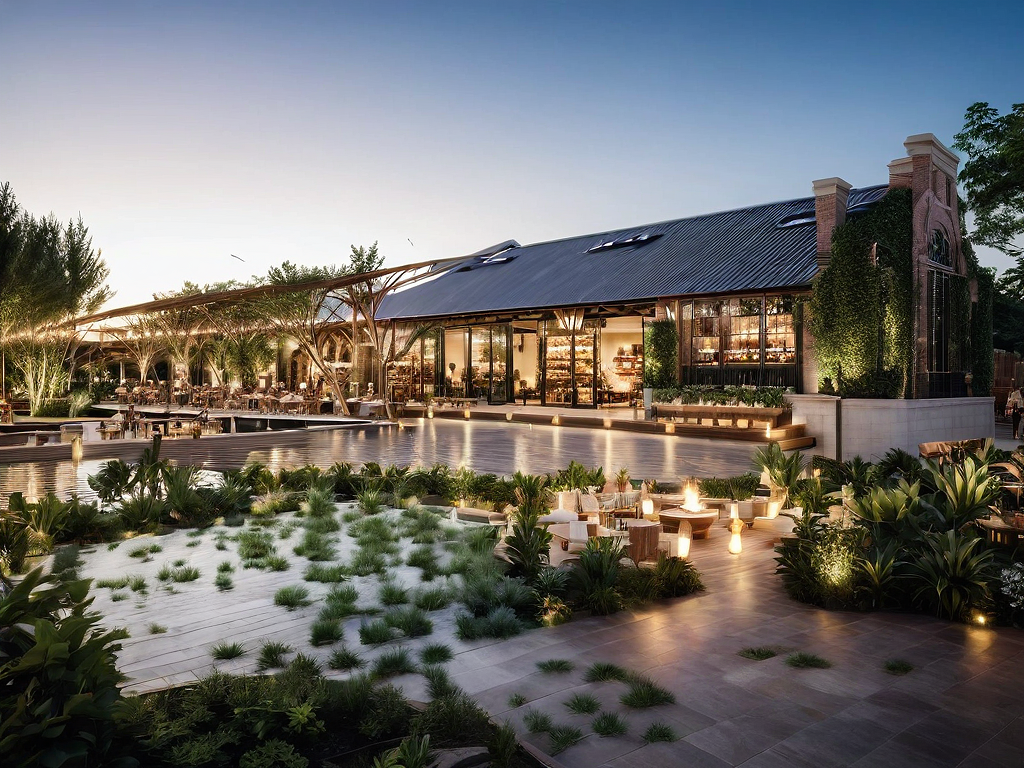 Promptfood hall, amazing garden, same construction materials, same facade, amazing terrace