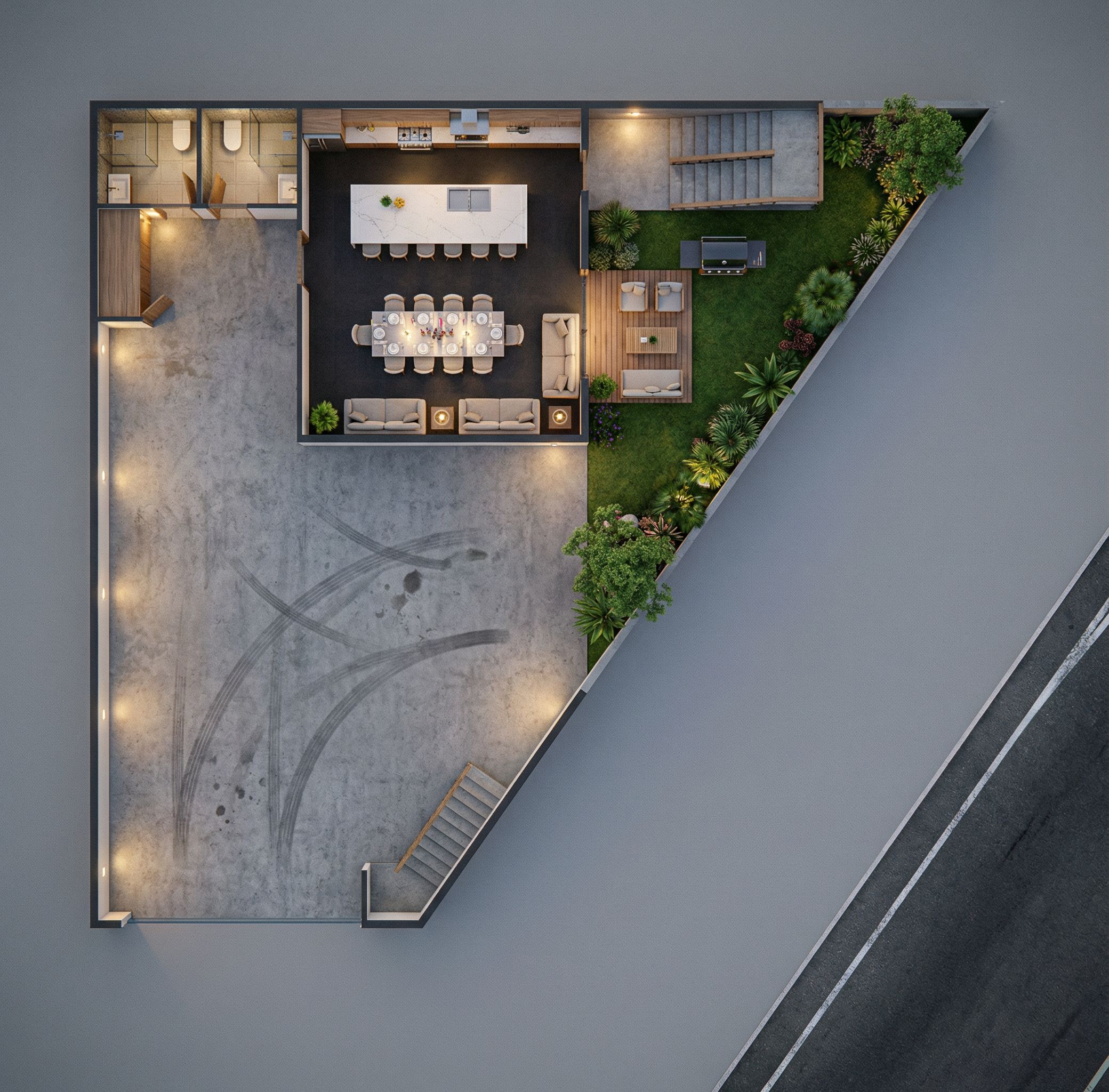 PromptGARAGE 1ST LEVEL WITH 2 BATH AND KITCHEN FOR LARGE PARTIES AND GREEN AREA, keep exact camera angle