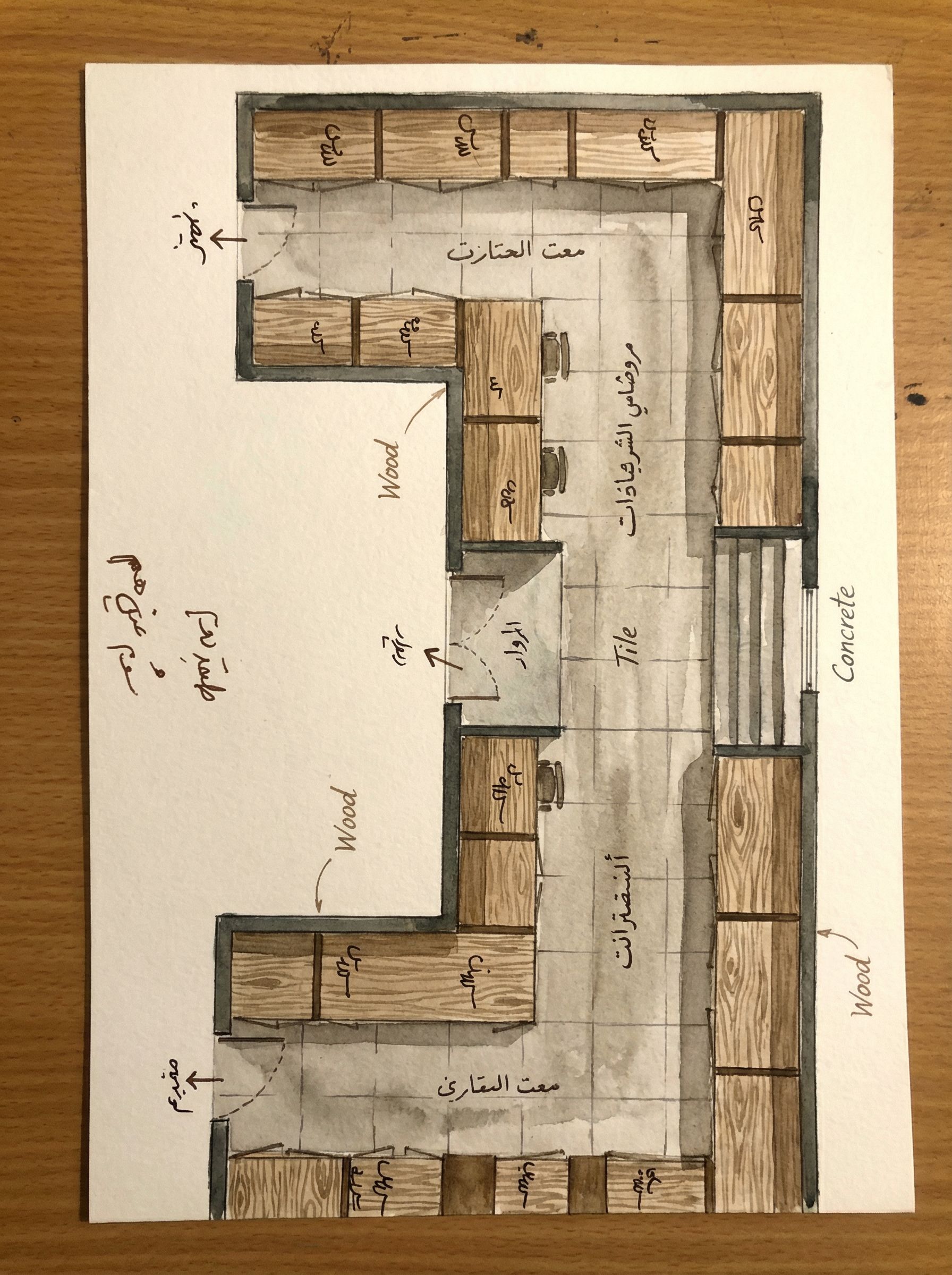 Promptarchitectural floor plan, render this sketch into watercolor painting, “Enhance the image quality to an ultra-high level suitable for a final architecture project. Render all lines with perfect sharpness and accuracy. Improve lighting to achieve realistic, physically accurate illumination with natural shadows and correct reflections. Add high-fidelity environmental details including realistic vegetation, sky, and material textures. Ensure professional-grade architectural visualization with clean geometry, precise details, realistic depth, and a polished final visual. This image includes both the architectural plan and the 3D view; no rendering is required—just enhance this exact image to the highest possible quality.” do not type the font, close-up detailed view, including material indicators, high quality, professional, detailed scene
