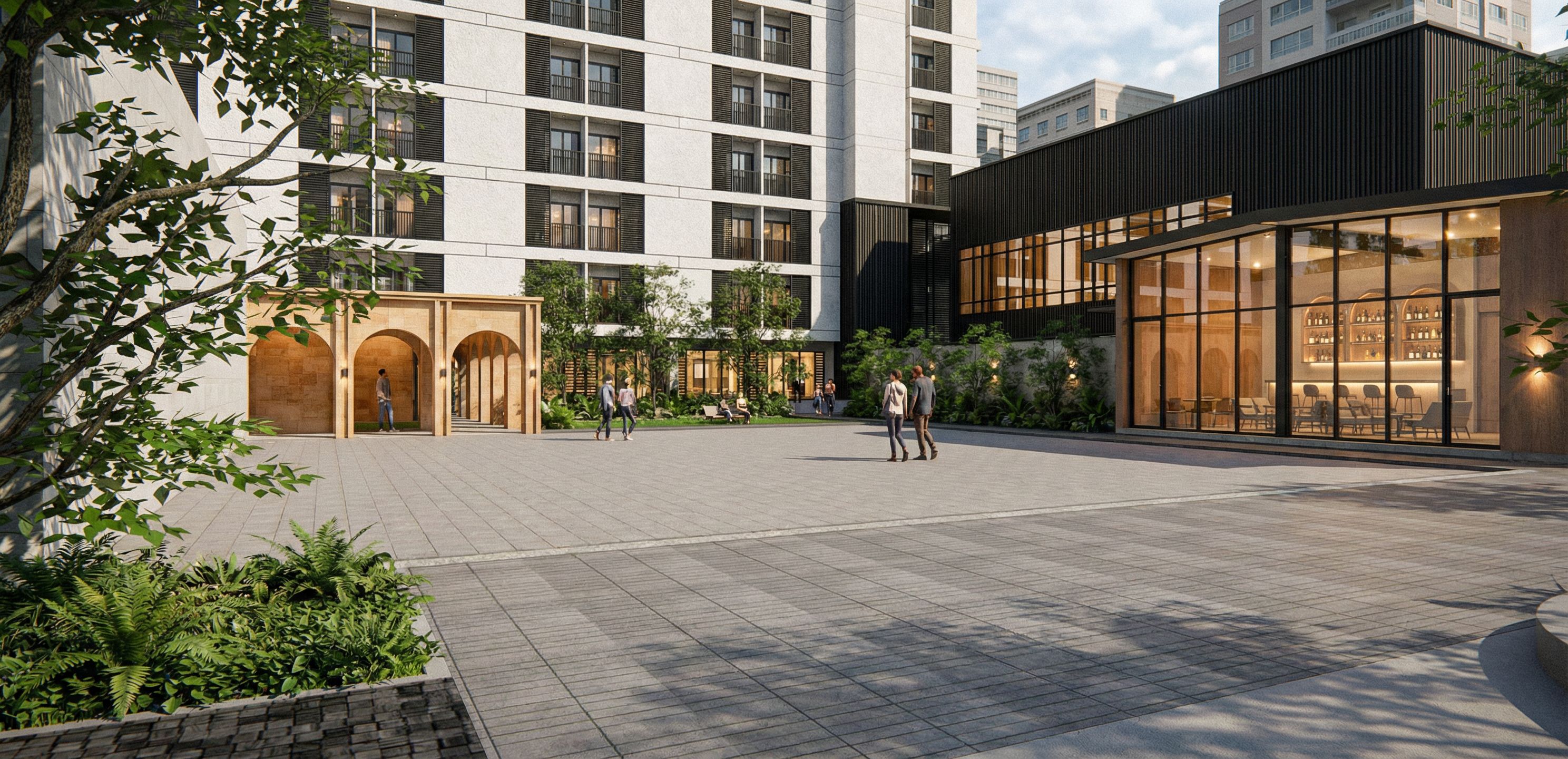 Promptสร้างภาพPhoto Realistic อ้างอิงจากรูปภาพที่ส่งให้ไม่เอาเส้นขอบเหมือนการ์ตูน เน้นภาพให้เหมือนภาพถ่ายโดยเน้นแสงเงาจริงที่ตกกระทบตามอาคารและวัตถุ ใส่ท้องฟ้าและบรรยากาศ จัดแสง ภายในห้องกระจกเป็นบาร์เหล้าจัดเฟอร์นิเจอร์ให้สมบูรณ์backgroundอาคารโดยรอบ ใส่พืชคลุมดินใต้ต้นไม้ใหญ่ , keep exact camera angle