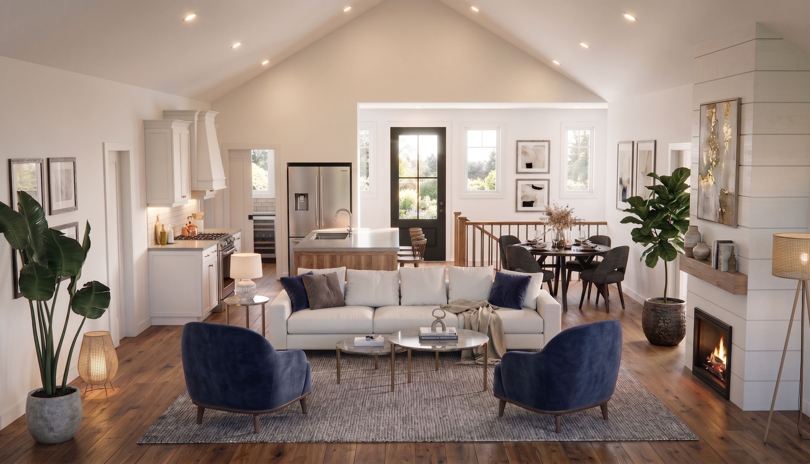 Promptchange the ceiling lights and add pot lights, turn all the lights on and show lights under kitchen cabinet uppers, keep exact camera angle