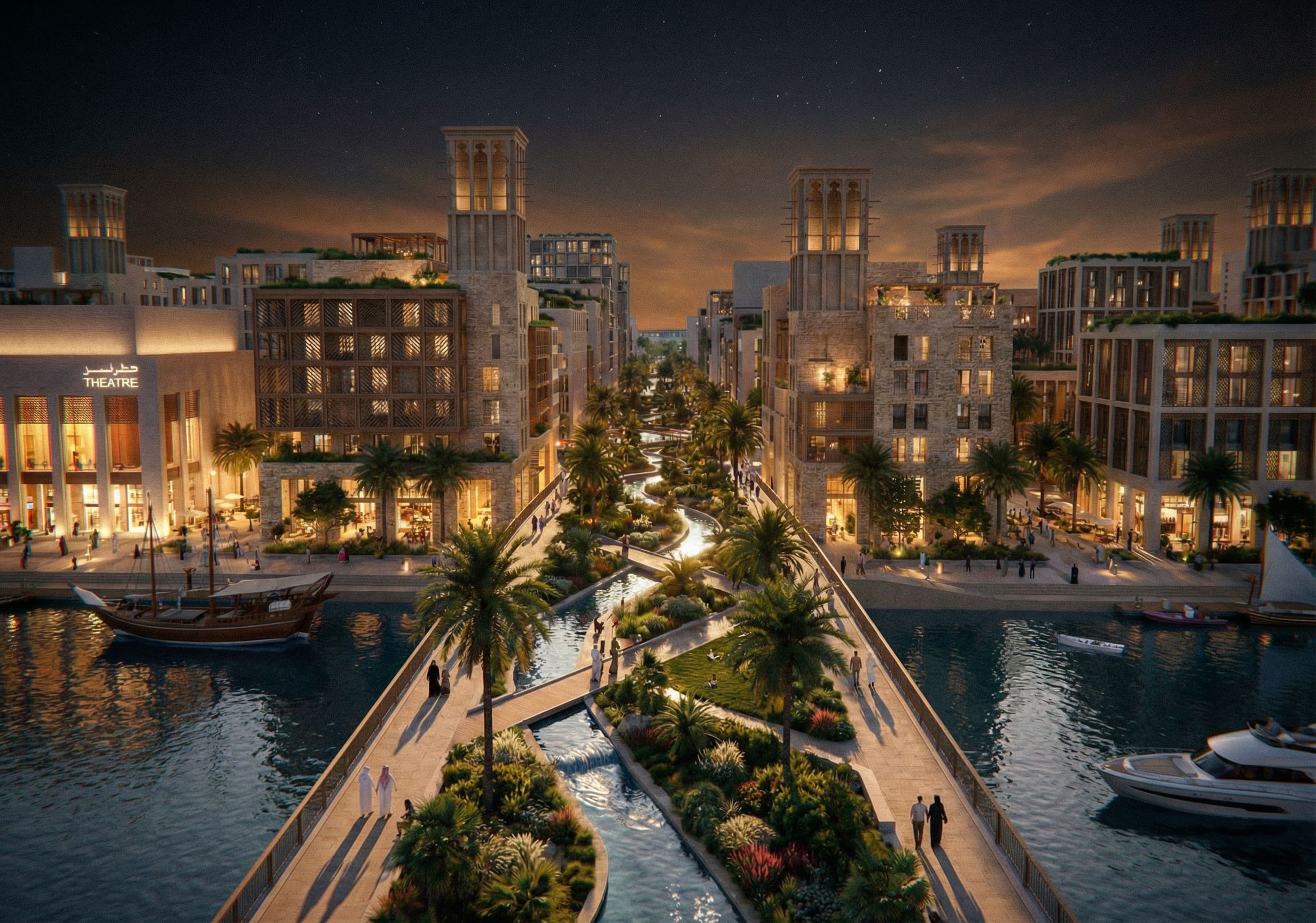 Add theatre building to left of bridge. Set in bahrain, keep exact camera angle