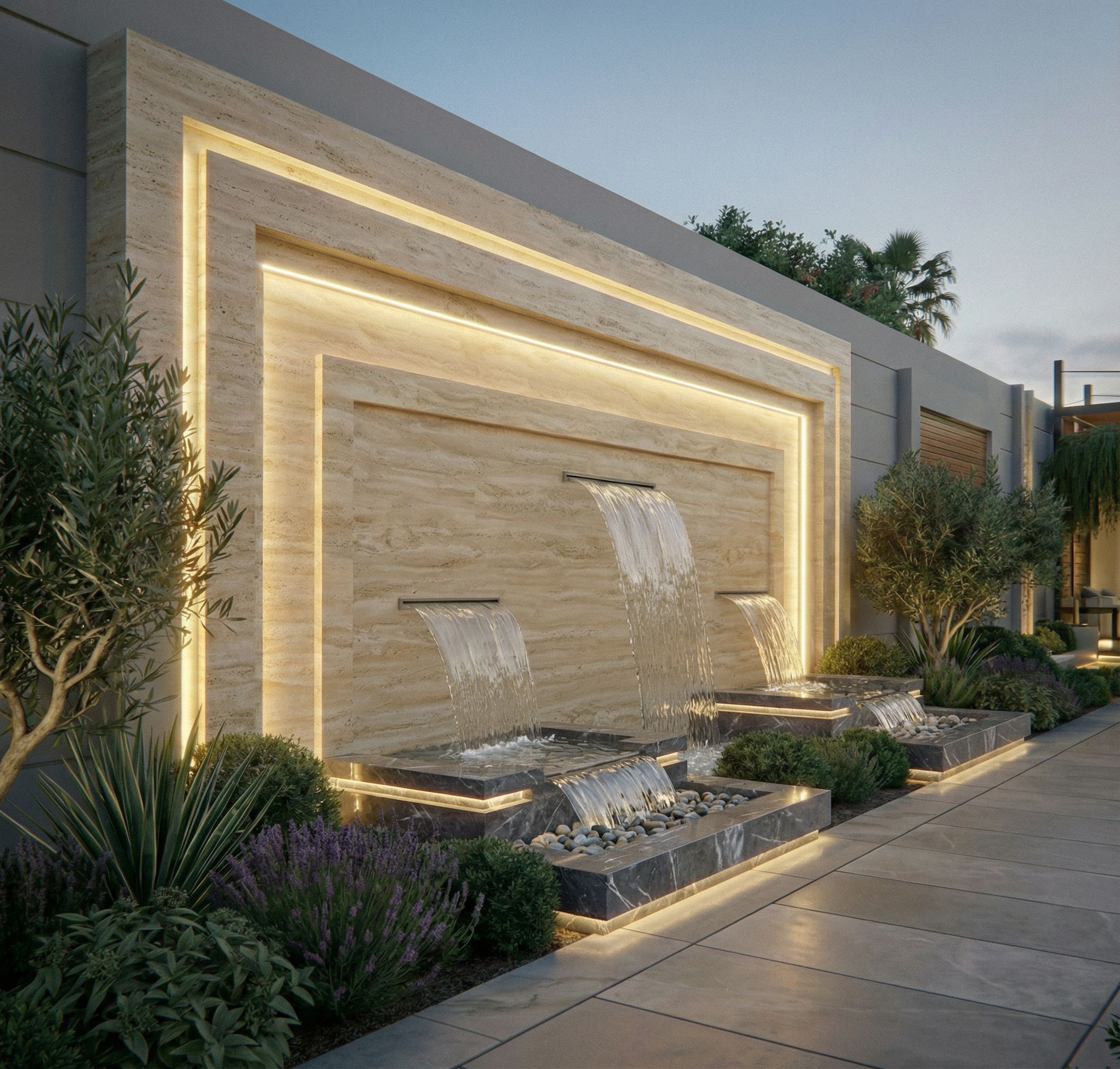 PromptKEEP EVERYTHING SMAE AND , ONLY CHANGE THE FOUNTAIN BOX SHAPE AND DESIGN TO BE SAME AS SECOND IMAGE, keep exact camera angle