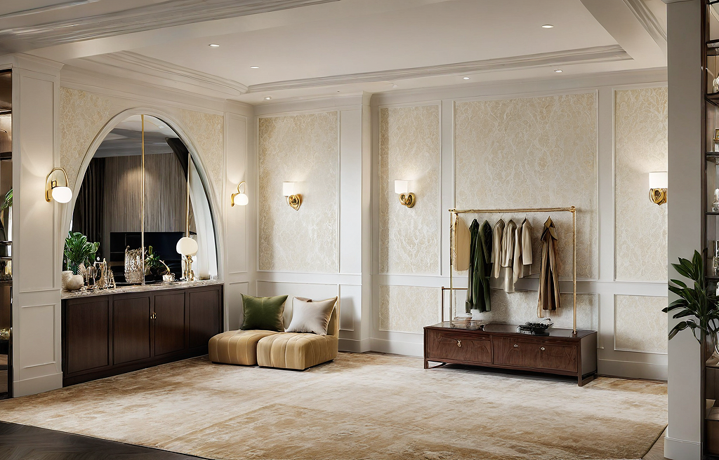 Promptwallpaper with wainscoating, full carpet, modern, warm and luxurious classic american