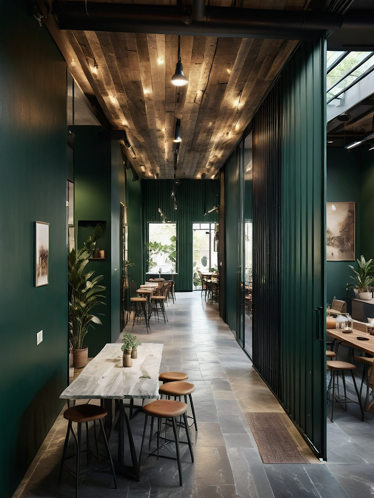 Promptattached the table,, change to a 55cm width table, stone floor, green walls