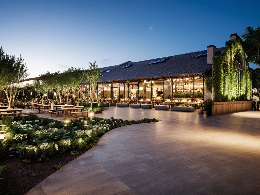 food hall, amazing garden, same construction materials, same facade, amazing terrace