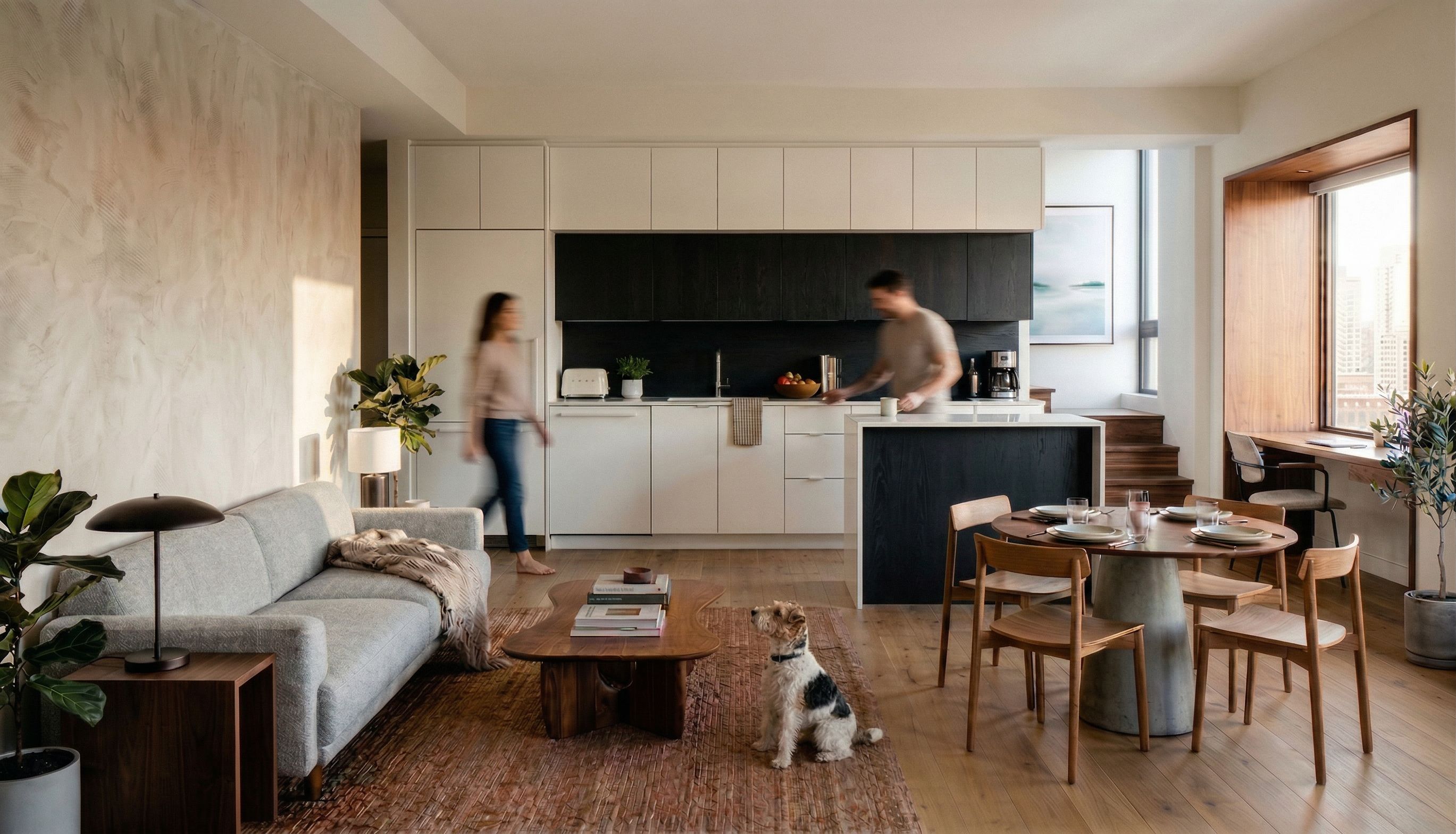 Promptuse same image with dark cabinet finish at backsplash and island, keep exact camera angle