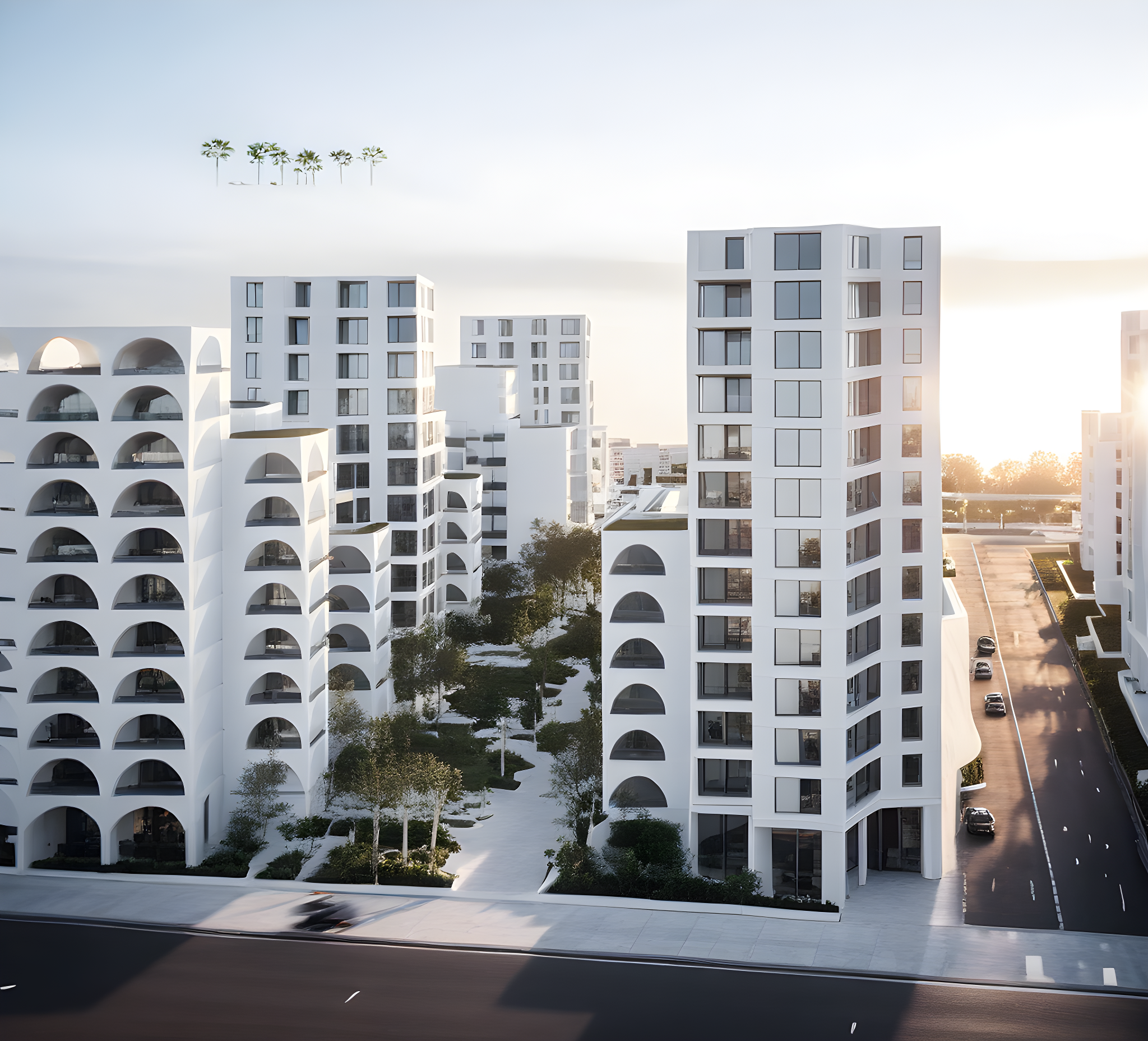 MODERN WHITE ARCHITECTURE, DAY LIGHT, STREETS,