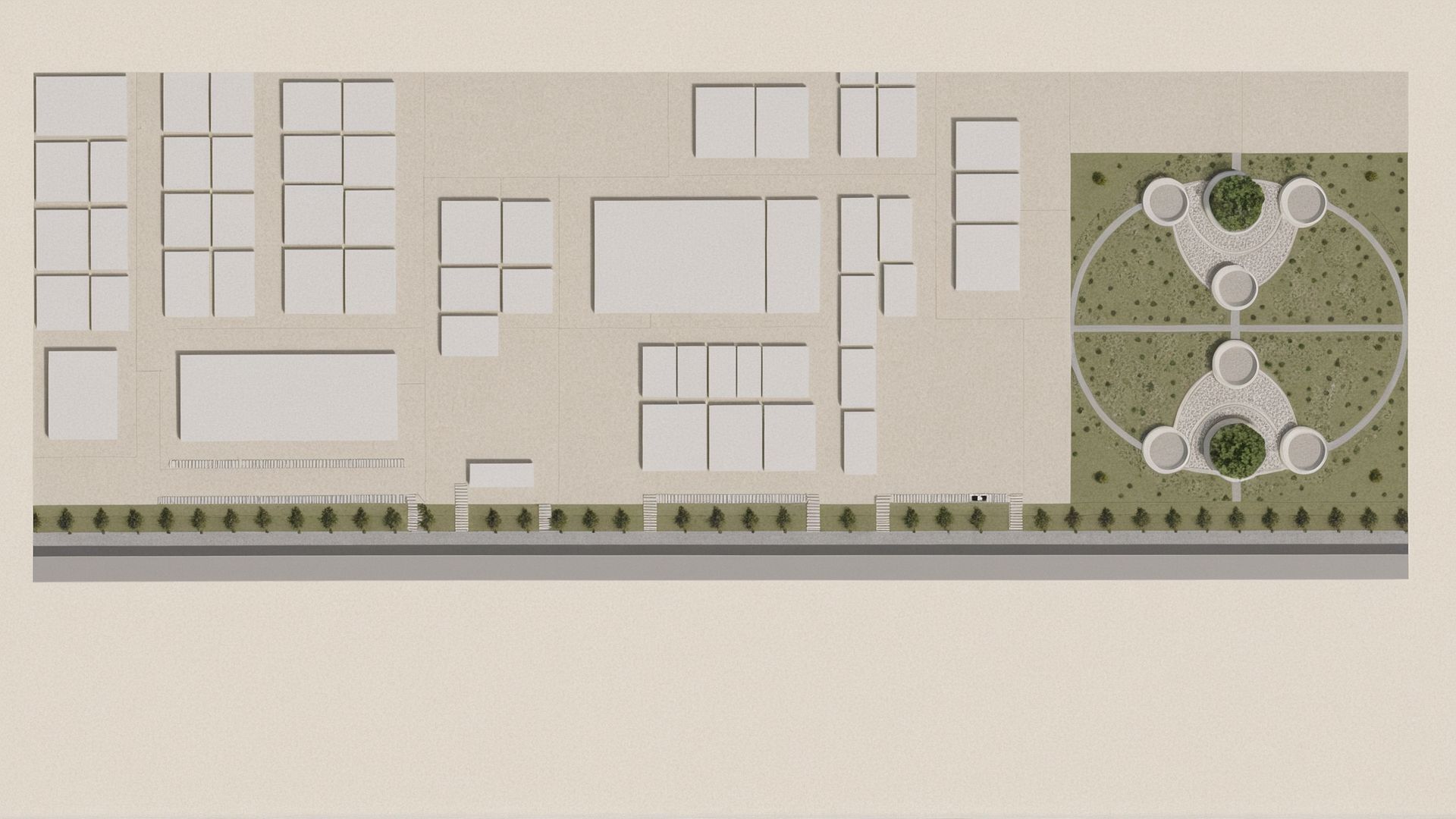“Generate a realistic render based on this masterplan without changing the layout or structure. Focus on lighting, materials, and landscaping only,DONT PUT TO MUCH LANDSCEPE