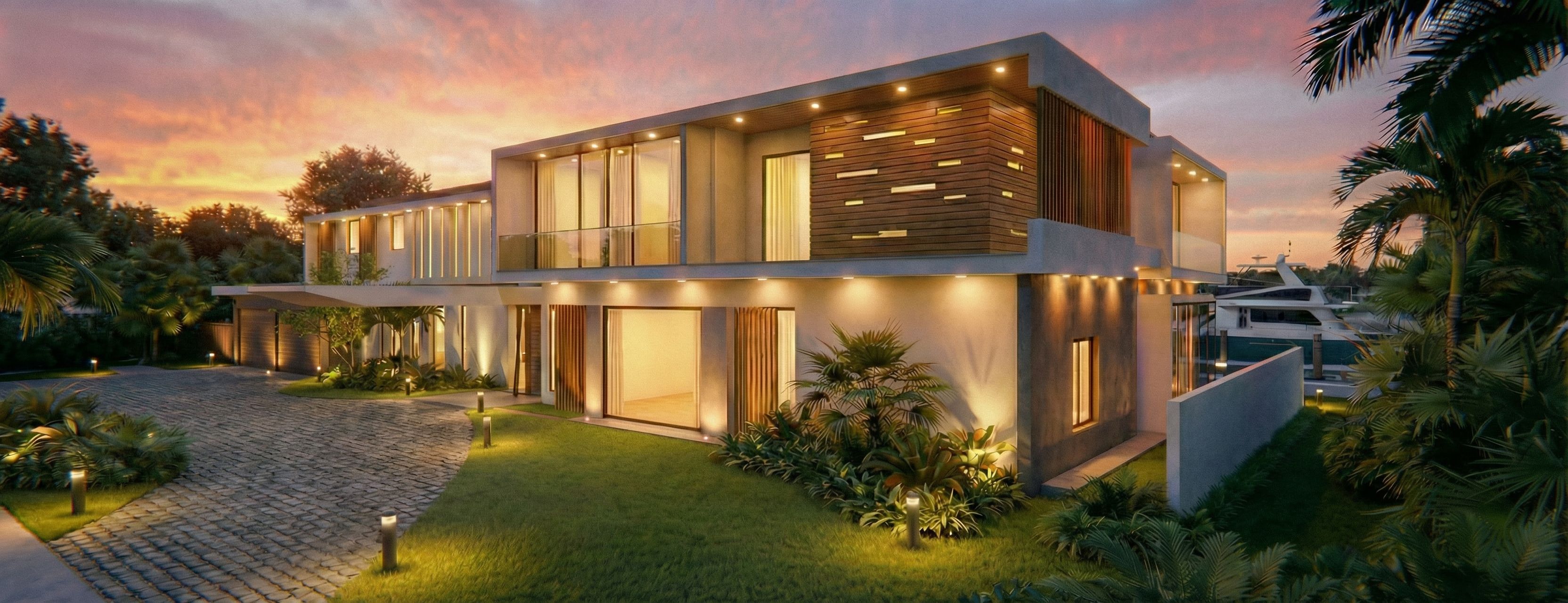 Prompttodas las luminarias redondas de los techos exteriores deben ser mucho mas pequenas. quitar el carro que aparece al frente en la imagen, keep exact camera angle