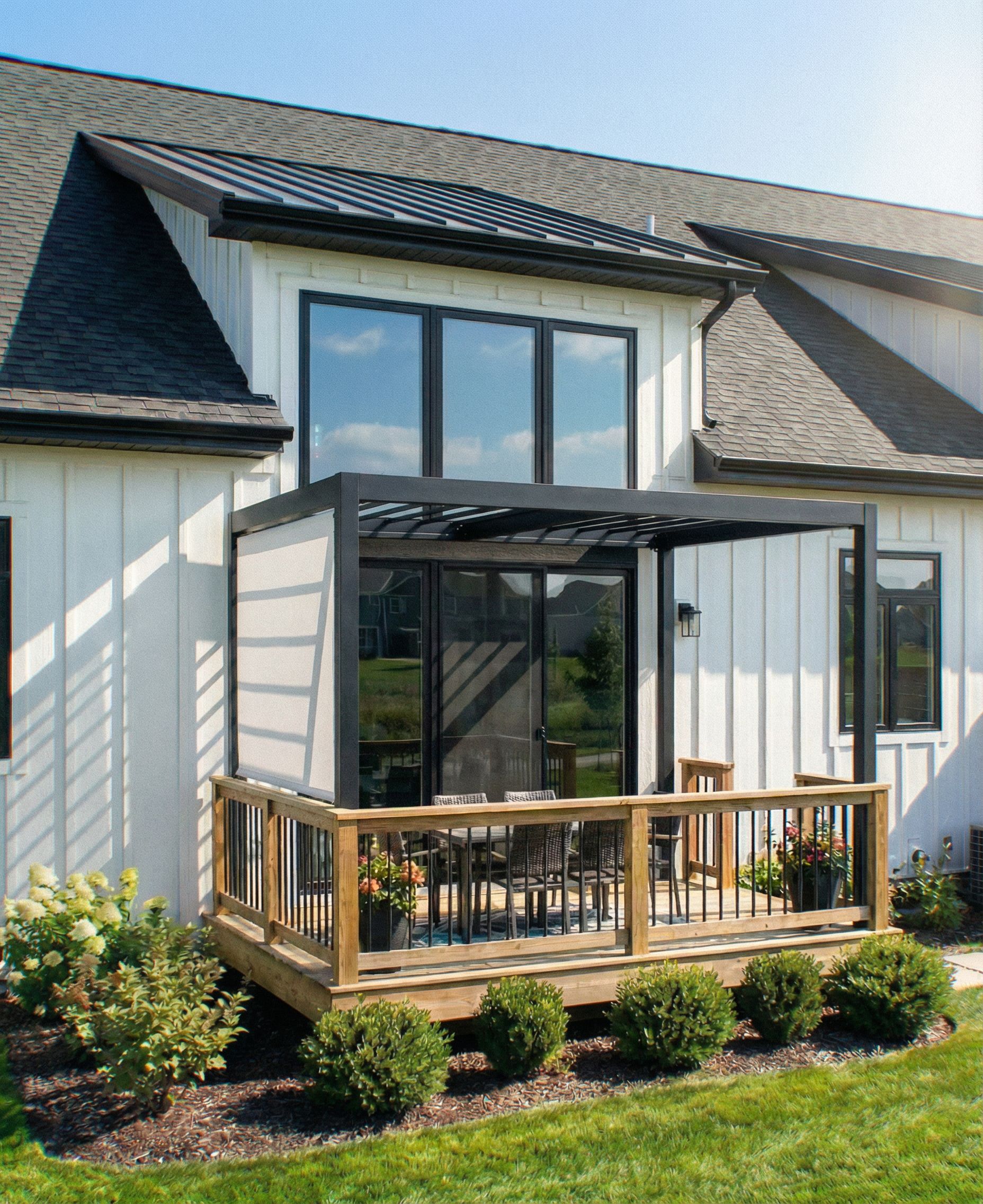 PromptCAN YOU ADD A WHITE SUN SHADE TO THE LEFT WALL OF THE PERGOLA, keep exact camera angle