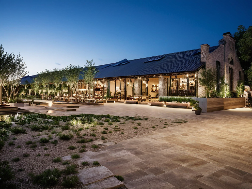 Promptfood hall, amazing garden, same construction materials, same facade, amazing terrace