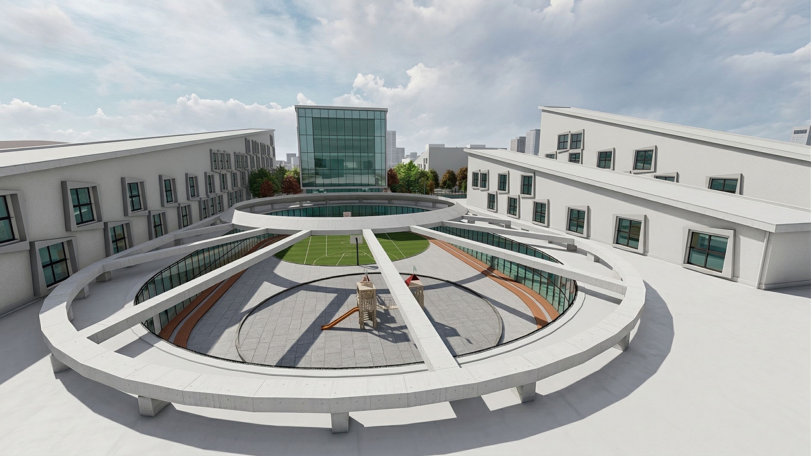 this is the roof of a high school don't add anything on the roof just enhance the material and make the scene look super realistic , keep exact camera angle