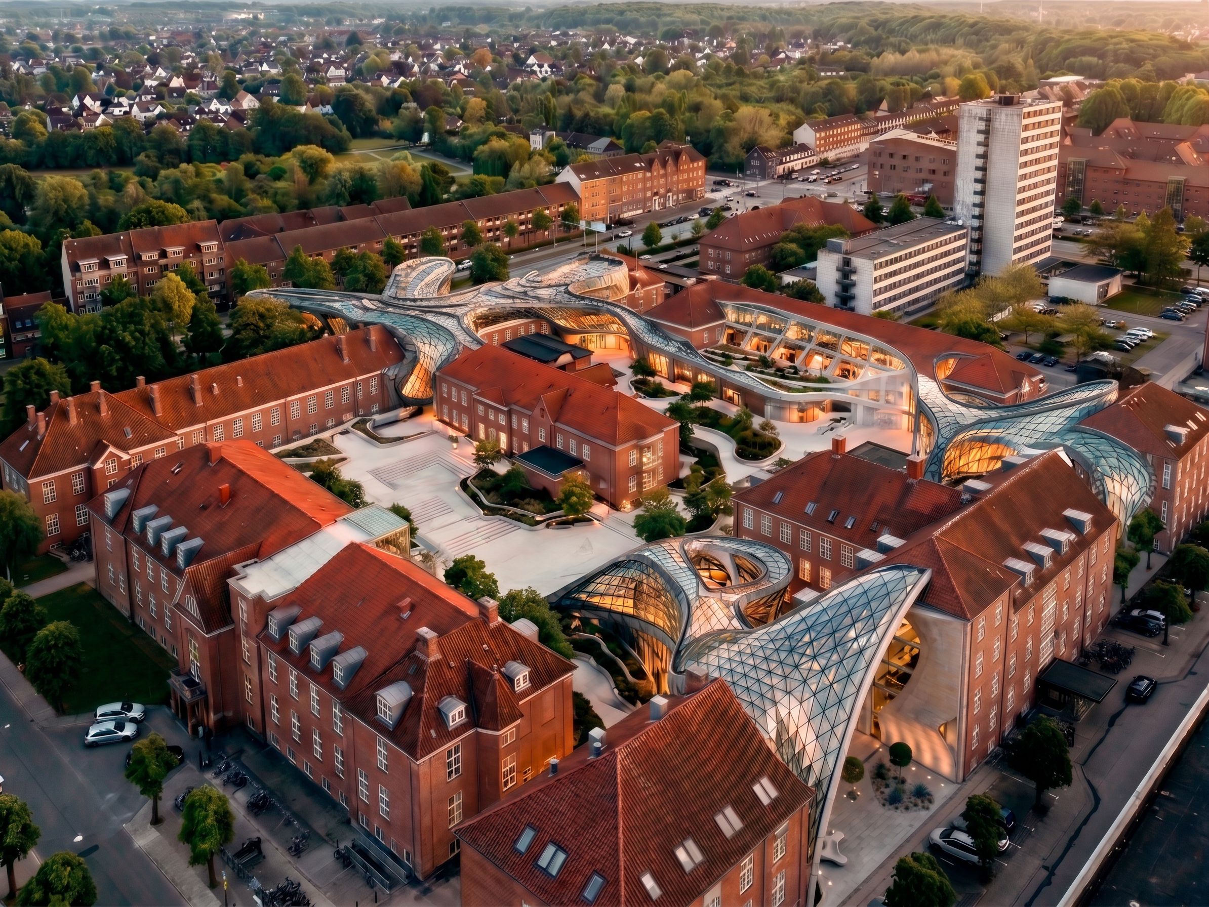 PromptEdit the building at the point marked with "1 yellow", as it is represented, from a different perspective, in the reference image., keep exact camera angle