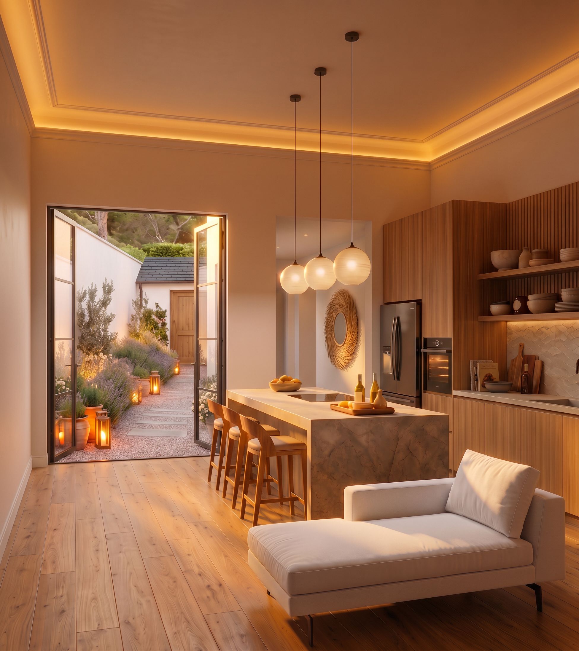 Promptcolcar o muro mais alto 1 metro. substituir o espelho pelo o da referĂȘncia MAS pendurar na parede lateral direita do corredor ao lado da cozinha, keep exact camera angle