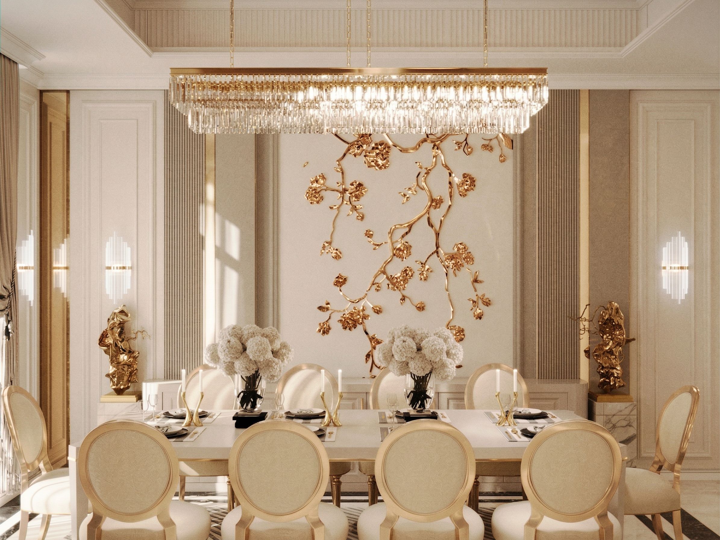 Professional, realistic rendering of a neoclassical dining area design... Material adjustments... Lighting... Precision... Clarity... Enjoyment , keep exact camera angle