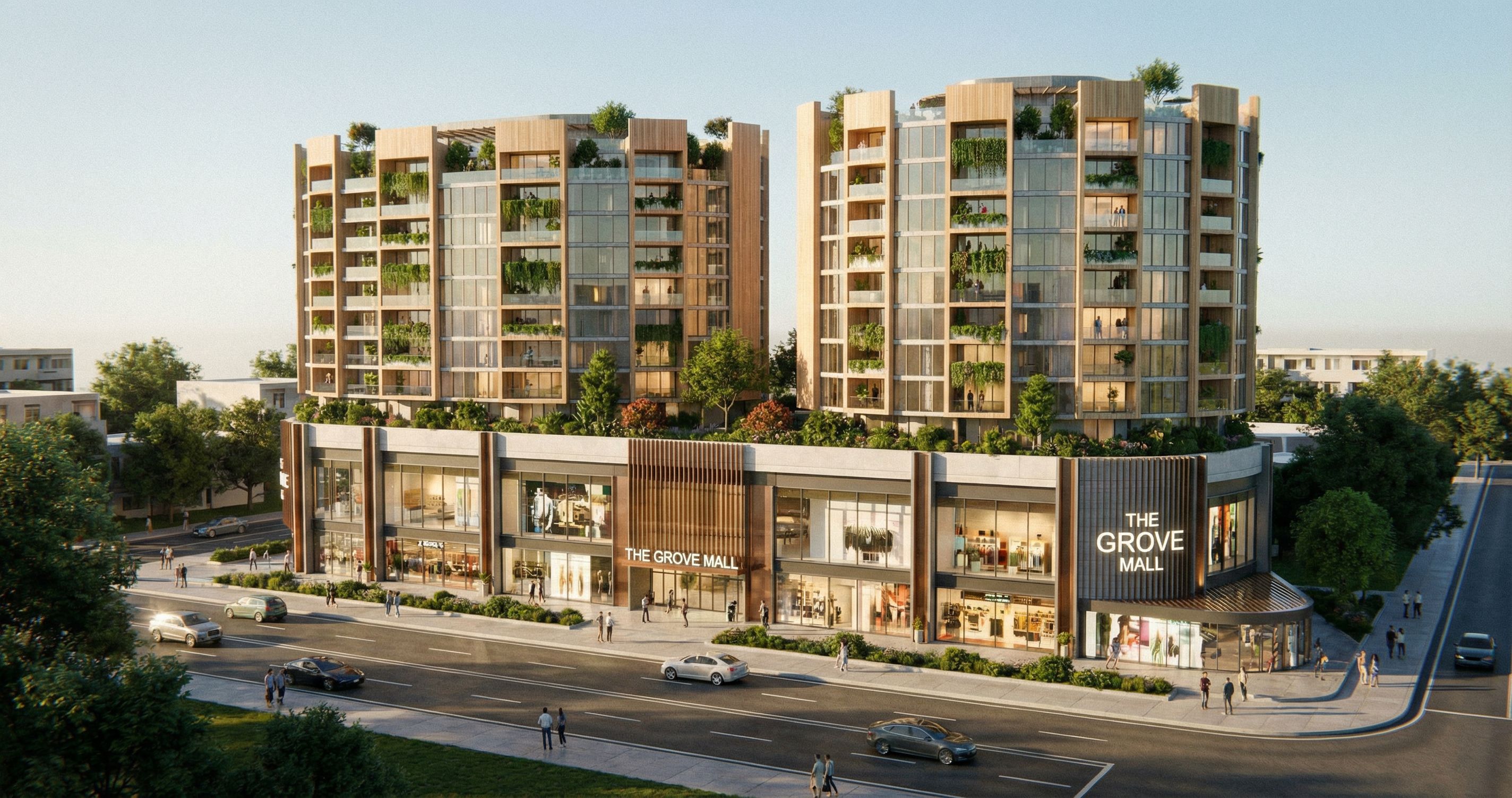 THIS IS A TWO RESIDENTIAL BUILDINGS ON A PODIUM WHICH IS A MALL COMMERCIAL CENTER MAKE THIS UILDING SUPER REAL AND ALIVE.. THE RESIDENTIAL TOWERS MUST LOOK ALIVE AND THE BLCONIES SHOULD HAVE PLANT AND BE SUSTAINABLE THE MALL MUST LOOK ICONIC,, DON'T CHNGE THE SCALE OF THE BUILDING DON'T CHANGE THE CAMERA ANGLE OR THE FRAME OF IT .. CHOOSE MATERIALS THAT CAN MAKE THE BUILDING LOOK LIGHTER IN WHEIGHT , keep exact camera angle