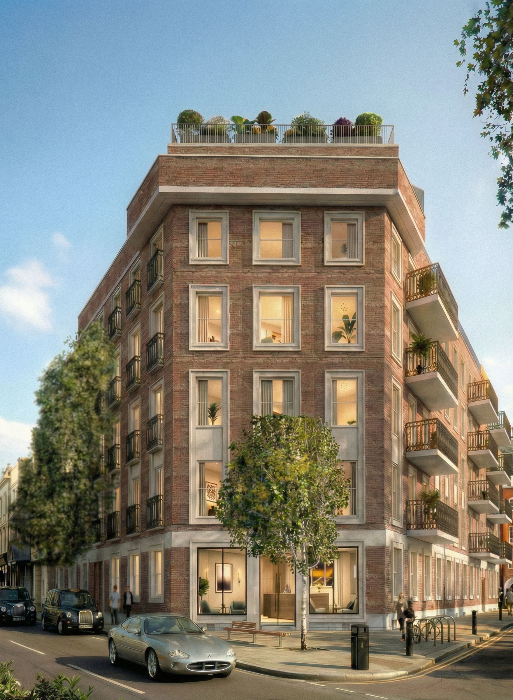 adjust the large balconies and the Juliet balconies design to match the reference do not adjust the rest of the image do not crop the image and keep the context the same