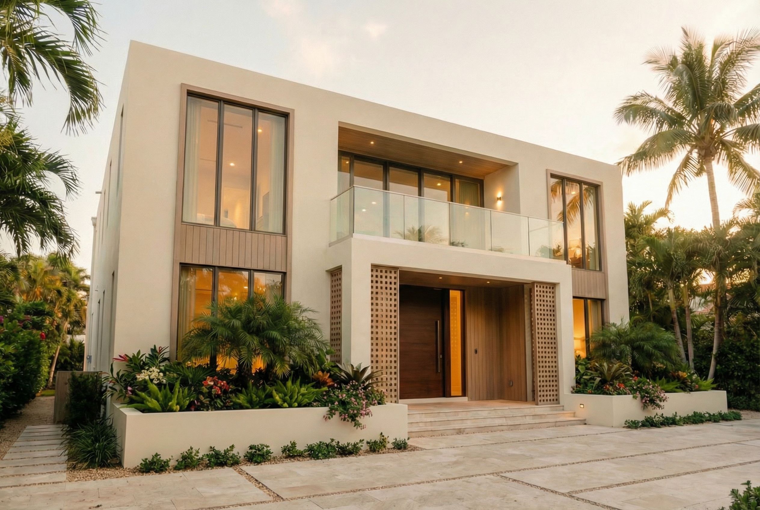 Promptdon't change anything besides what i mention. the wall with the sliding doors should recess further back. the wall above sits 6ft further back then the wall below with the front door. i like the color and materials. the front balcony should stick out a little farther. keep where the wall is above the sliding doors. that will be the roof overhang and then push the doors back another 6ft. , keep exact camera angle