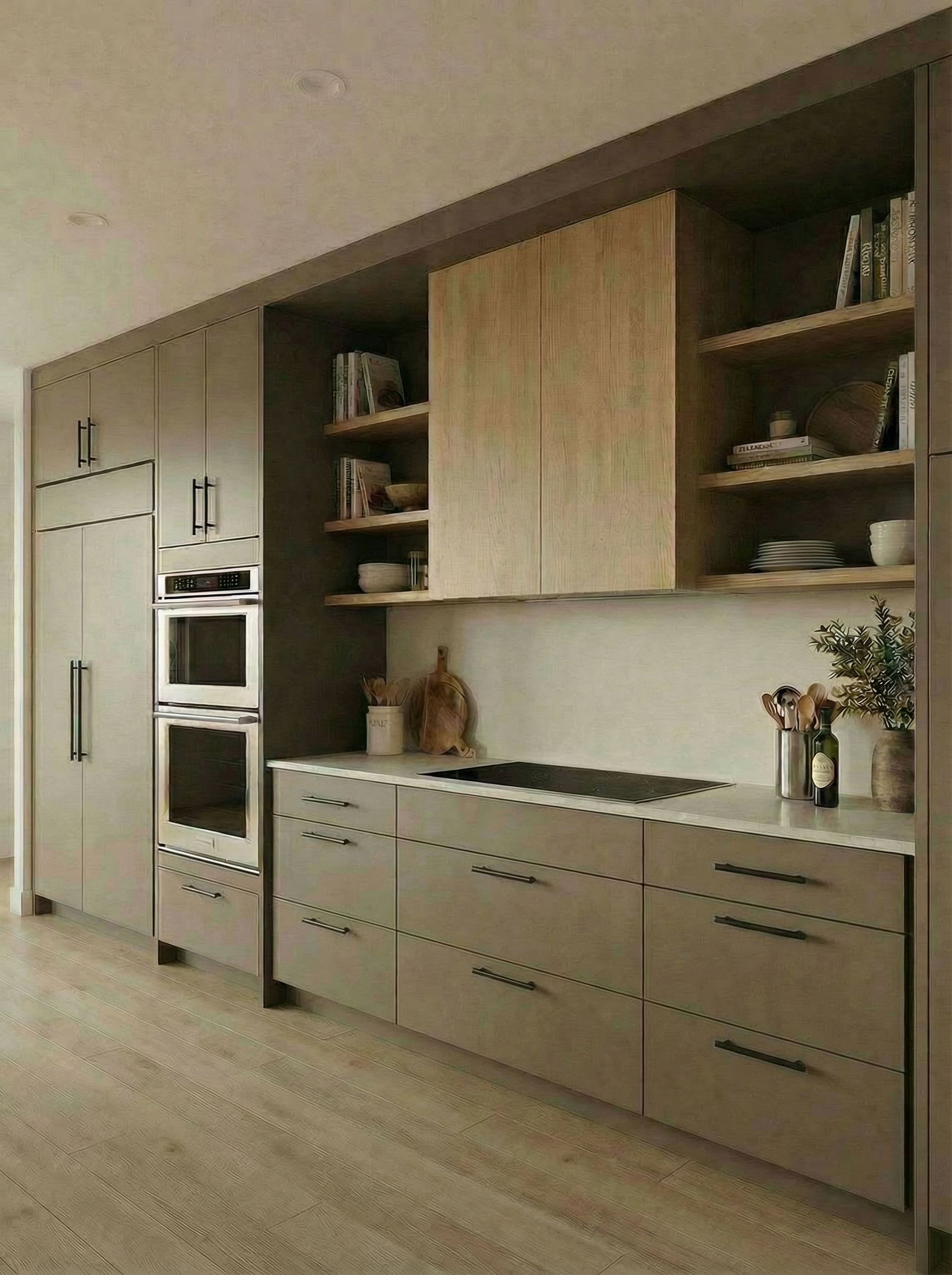Promptinterior design rendering, render this photo into photorealistic rendering, remove pulls from hood , eye level view, high quality, professional, detailed scene