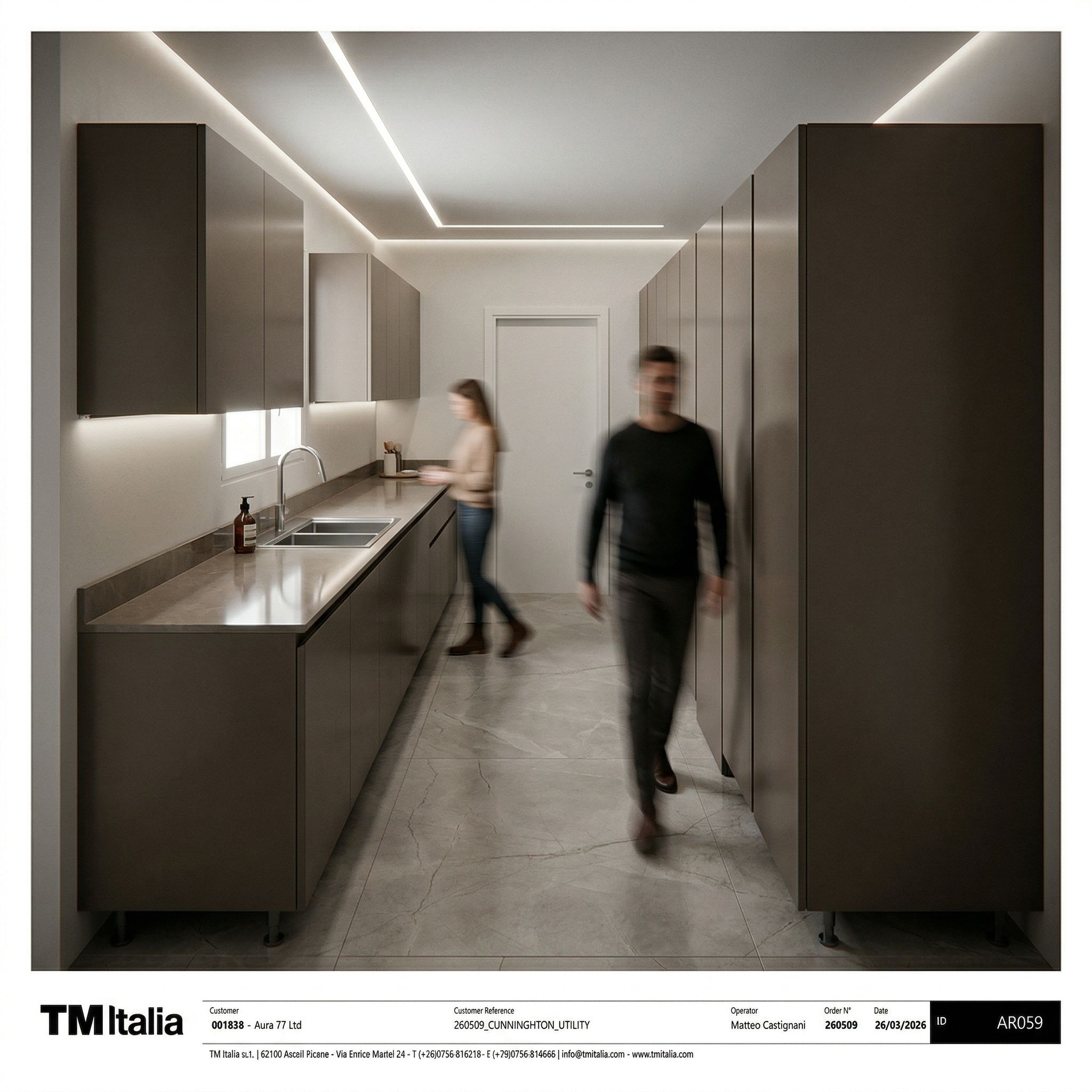 REnder adding a worktop where is missing on the base unit add one double sink and a tap make the floor in pulpis 120x120 and atoupe colour for the cabinet, keep exact camera angle