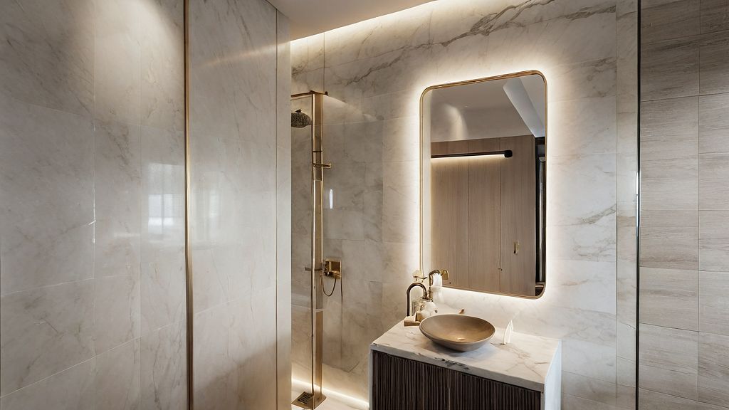 Promptsame geometry, furniture as it is, realistic ,marble on the walls, neutral colors