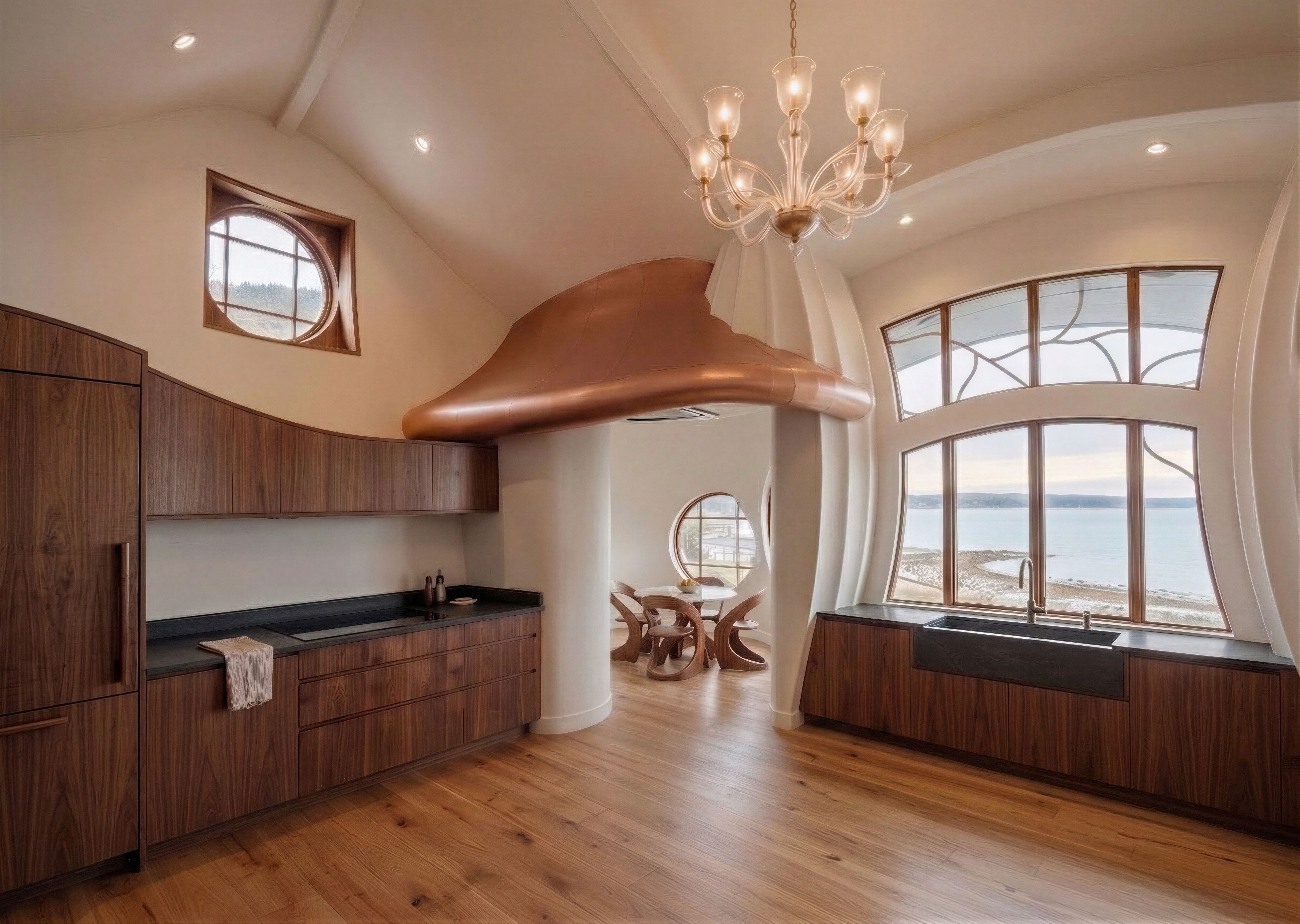 EnhancedPromptmake changes to this image as listed below: replace the sink on the left with refrigerator Add new sink in the middle of the cabinets below the big window do not change anything else in the scene Do not change any other items do not add any other items Do not change camera angle Keep the exact camera angle , keep exact camera angle