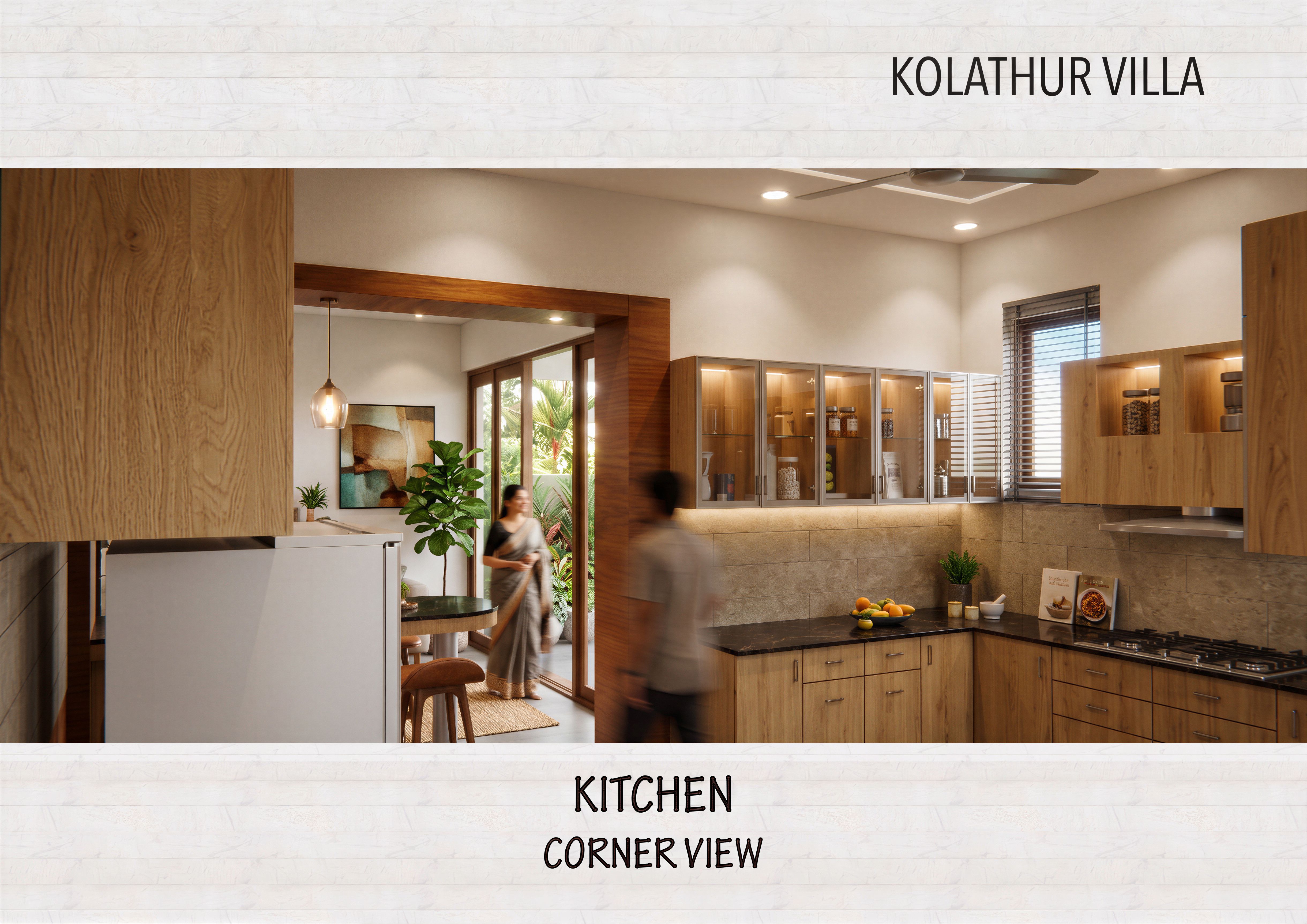 Beautiful, modern and minimalistic Kitchen Interior in a stylized Villa in Chennai, Tamil Nadu., keep exact camera angle