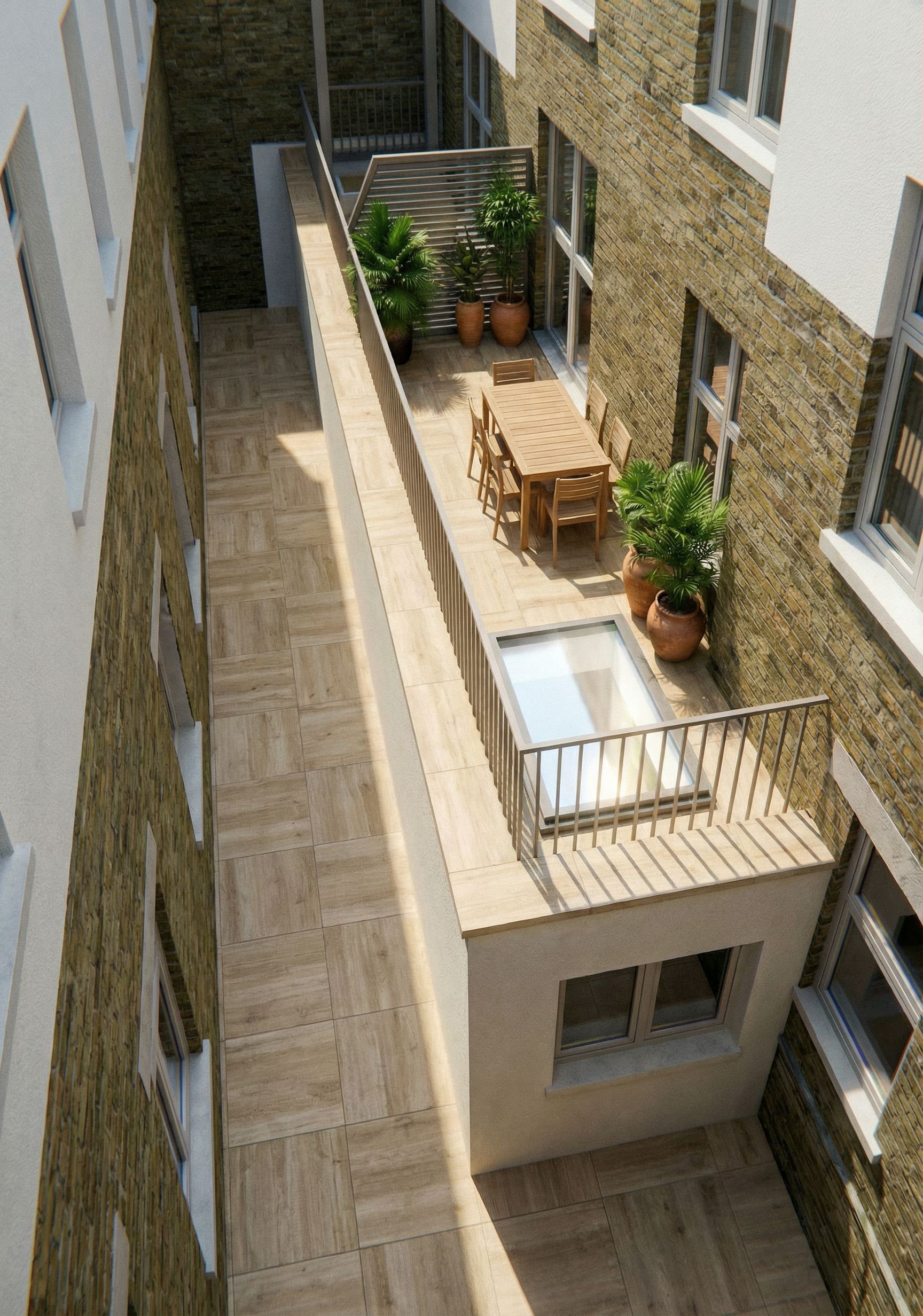 Promptrender image with tiles from reference, for terrace and floor of lightwell