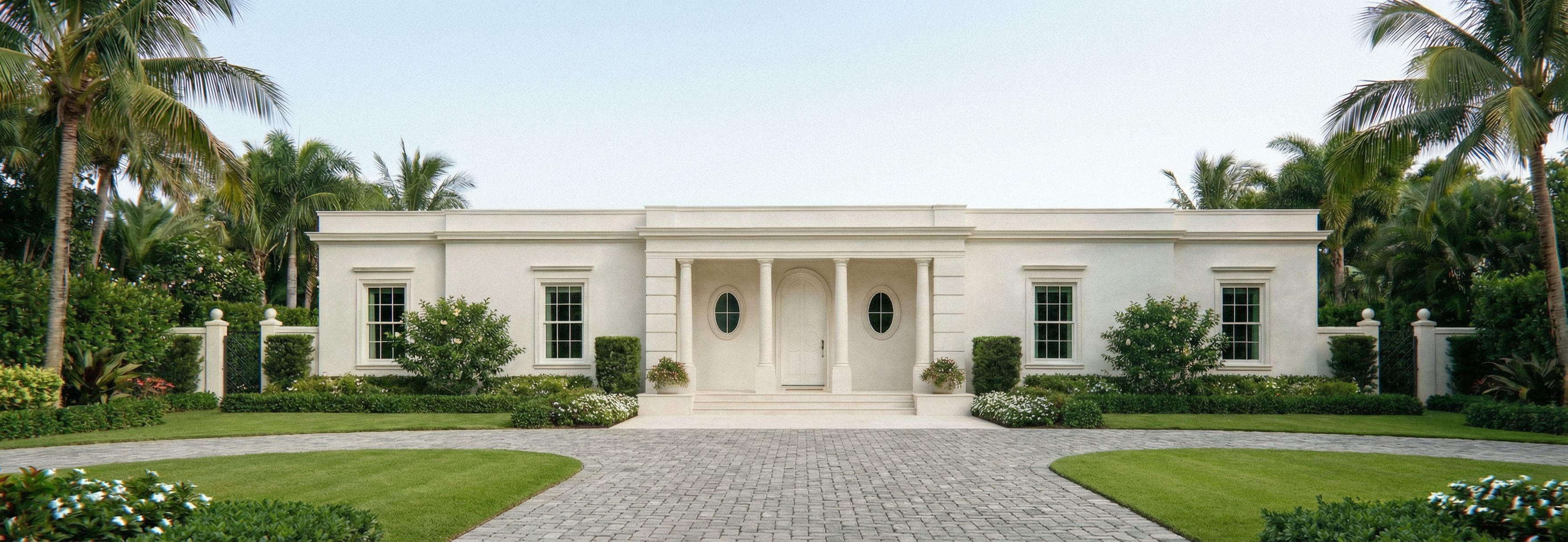 Promptchange only what i say. it should be an elgant front yard with a semi circular driveway , keep exact camera angle