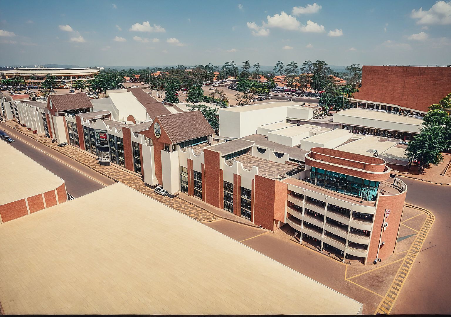 Promptshopping and parking mall in downtown Kampala CBD. INCLUDE SOME PEOPLE AND CArS