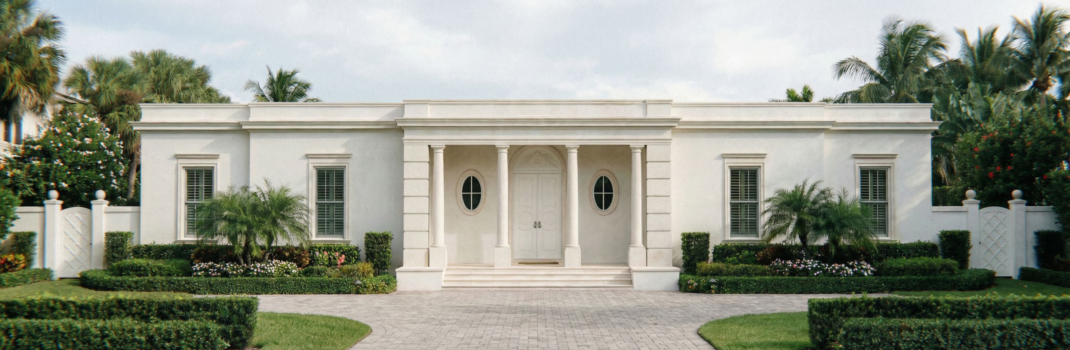 change only what i tell you, can you make it look more like a front yard with a simple semi circle drive way , keep exact camera angle