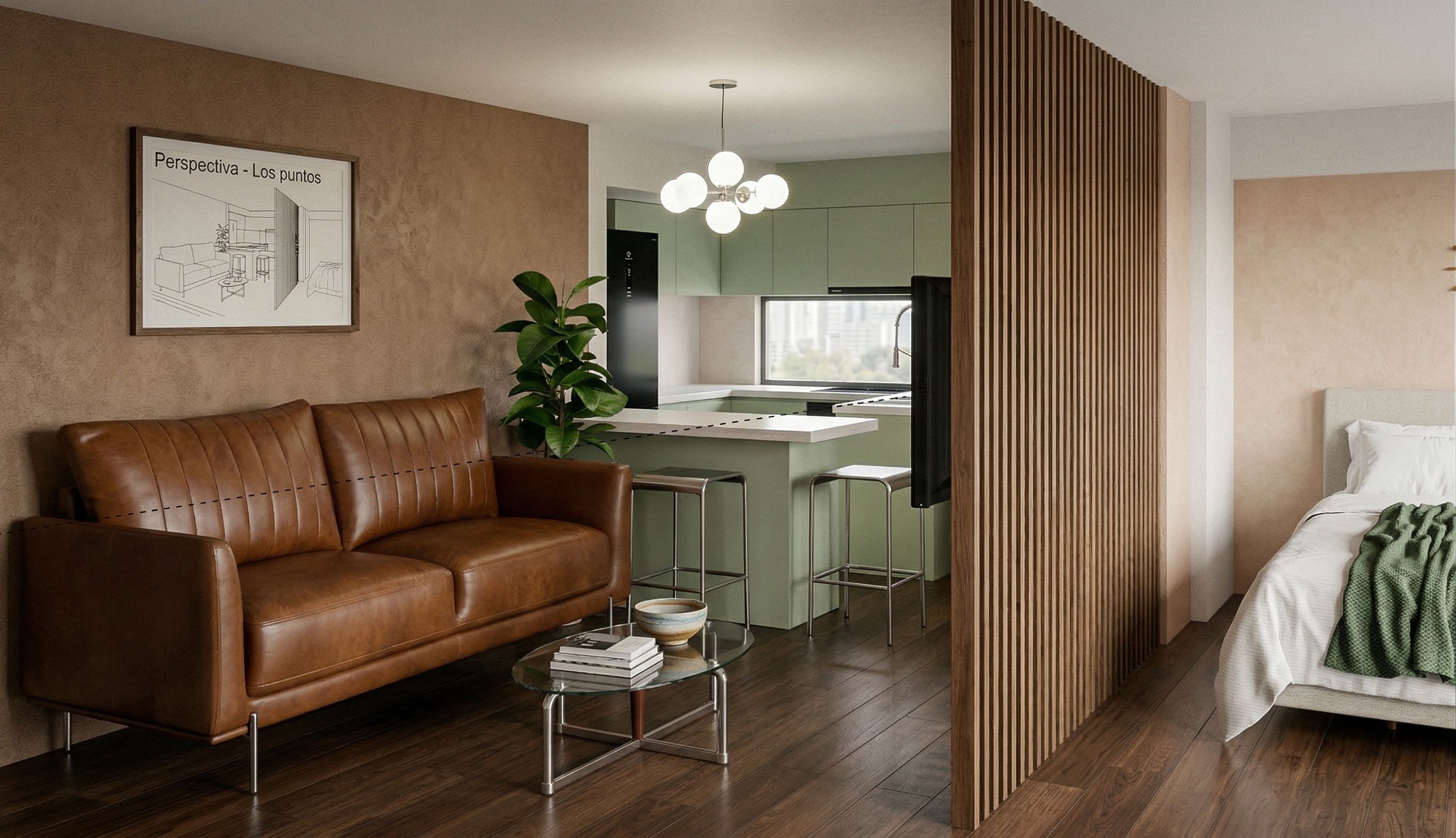Keep the composition clean, balanced, and uncluttered, respecting minimalist principles while adding enough detail to give personality and depth to the space.