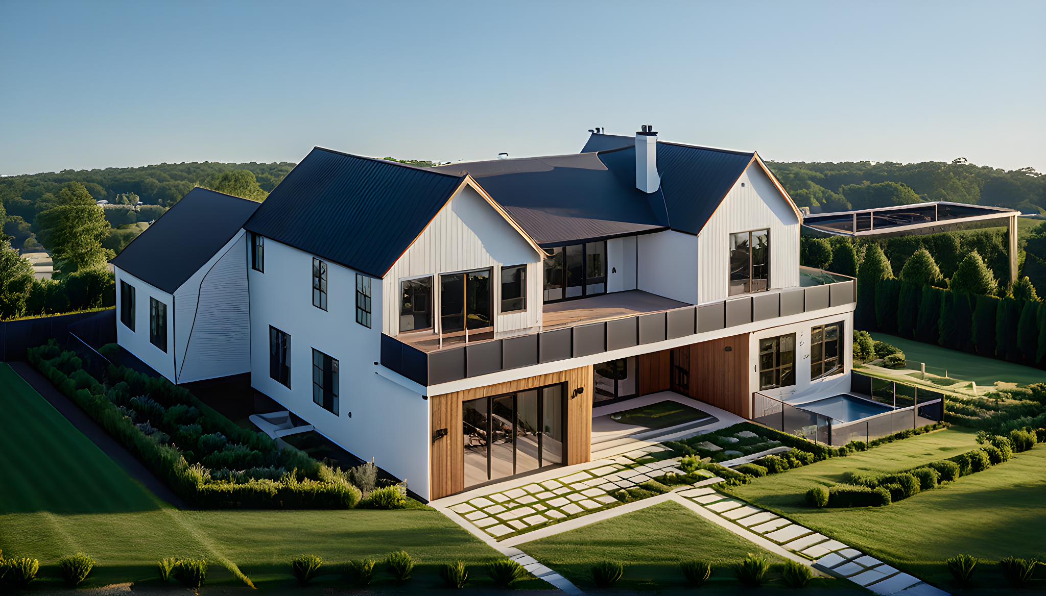 PromptLumion render style in hamptons environment, daytime rendering, lawn